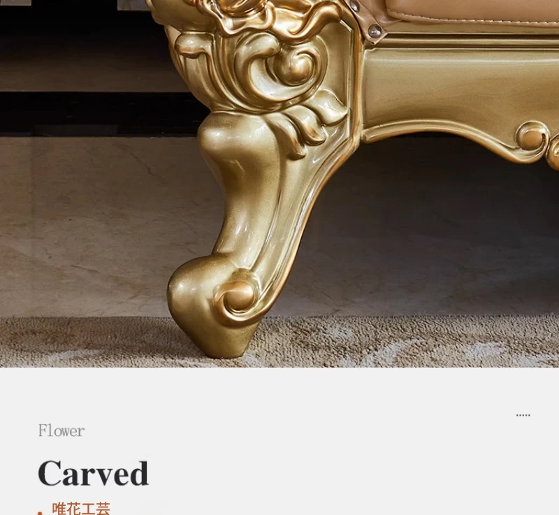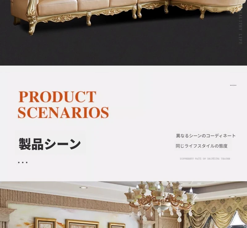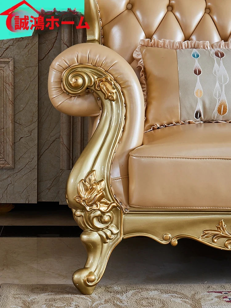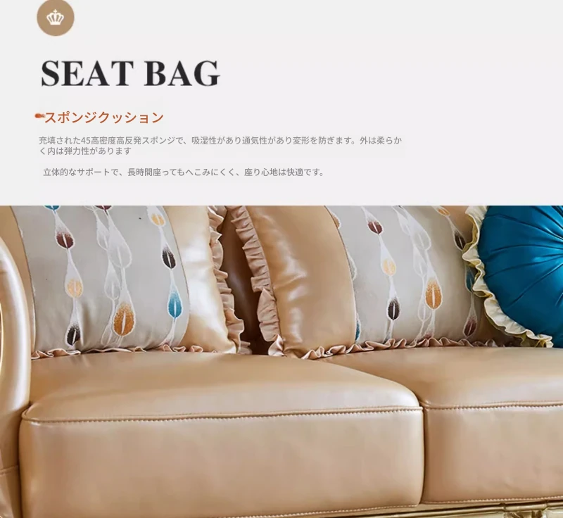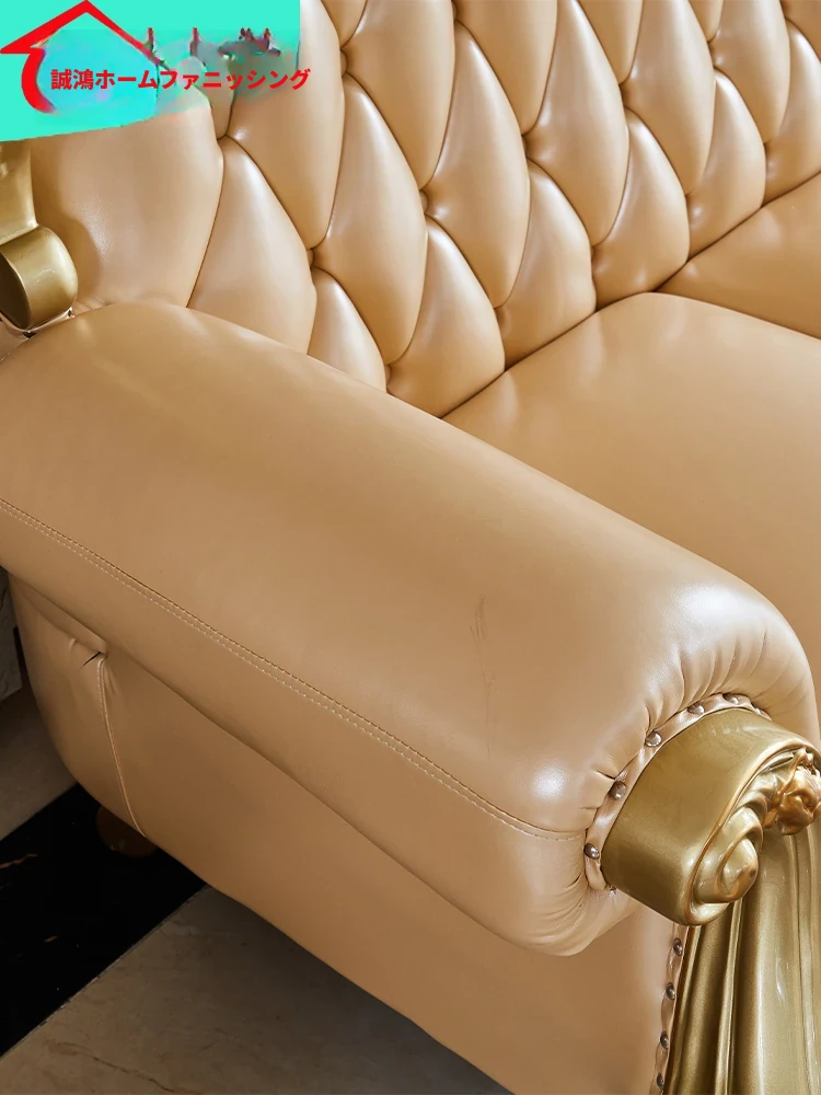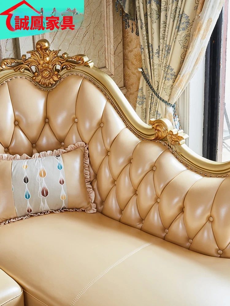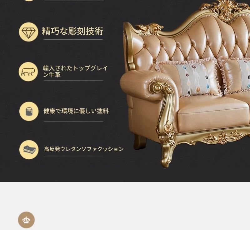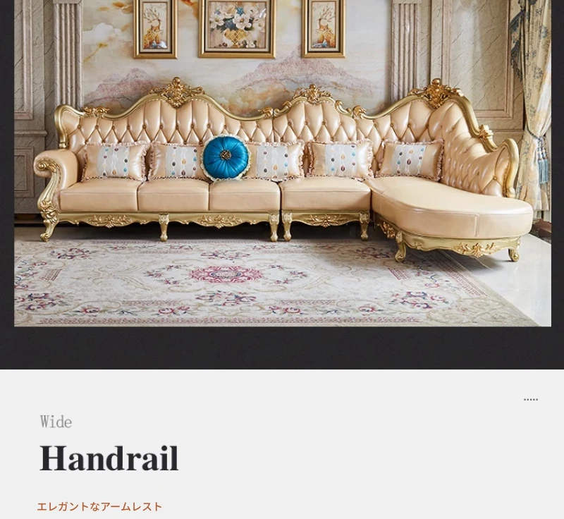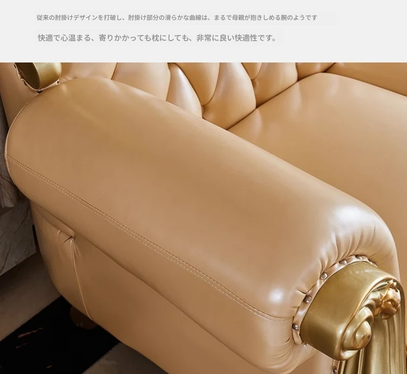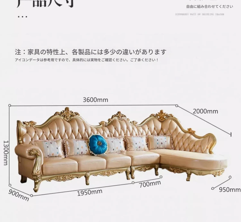 欧風本革L字型ソファセット - 高級ヴィラ向け、豪華なリビングルームに最適!シンプルでスタイリッシュなデザイン、全て揃ったセットで贅沢なひとときを演出。