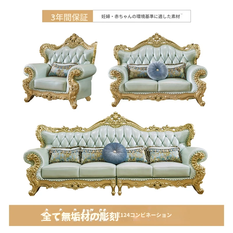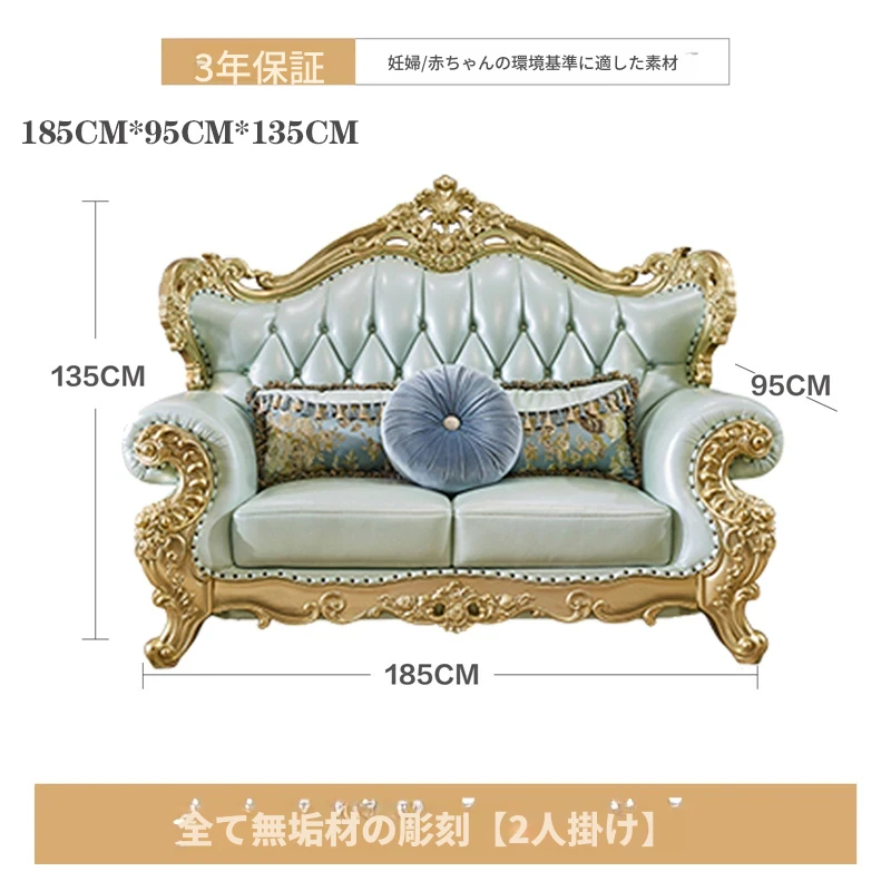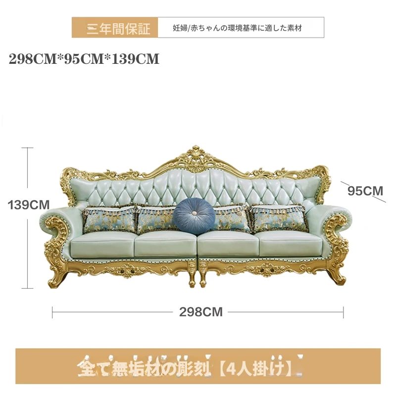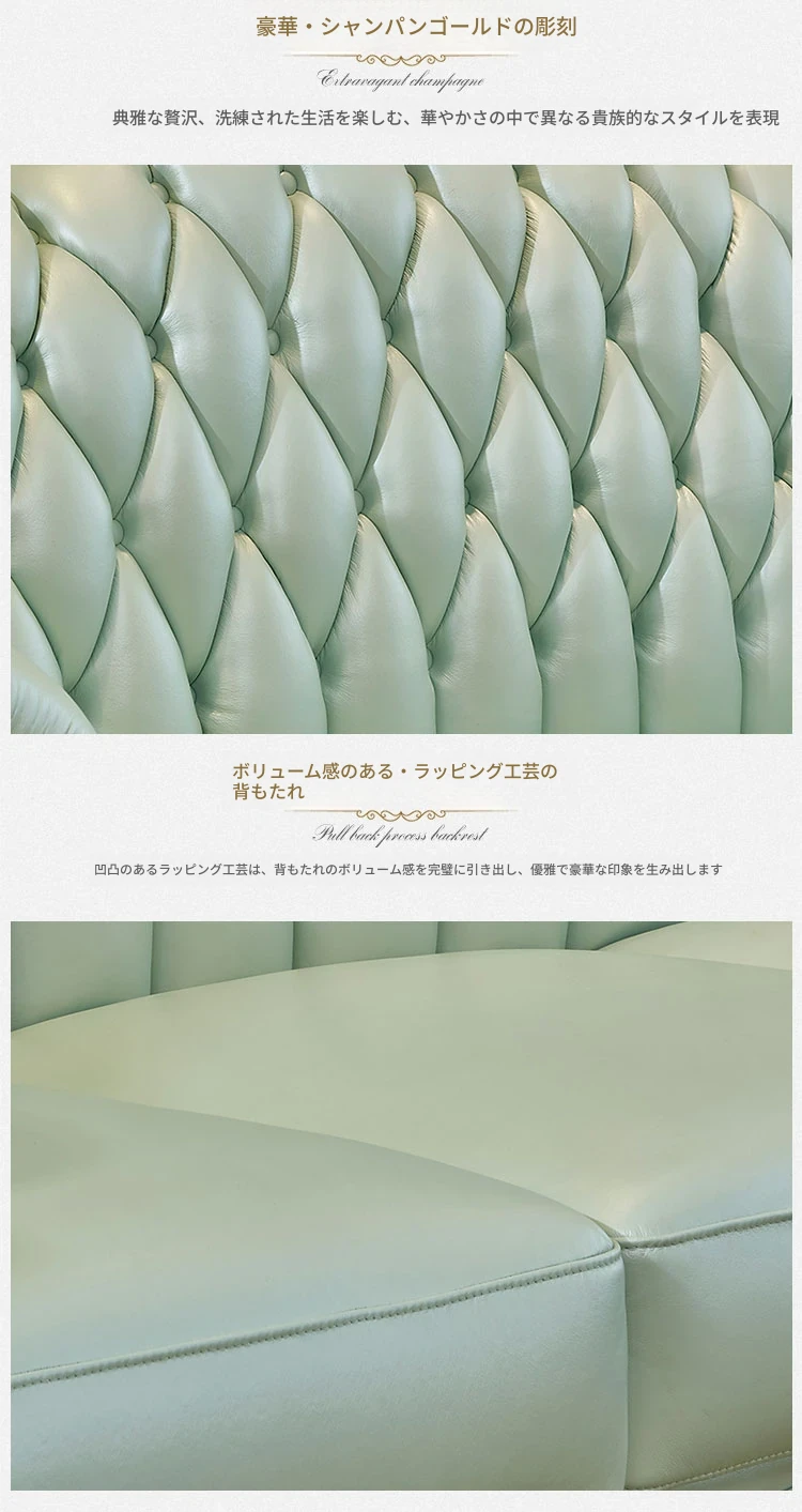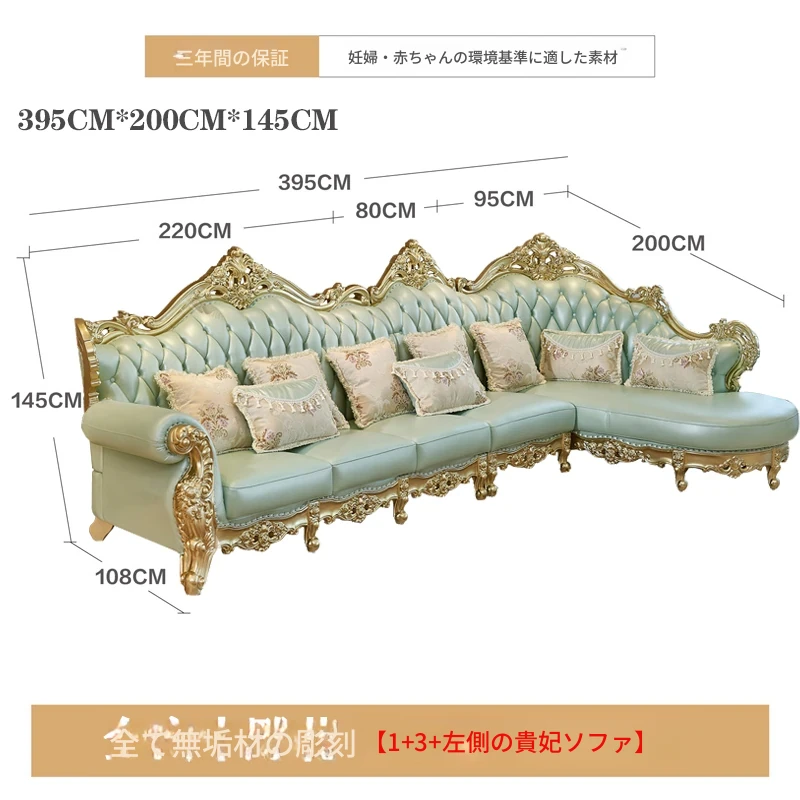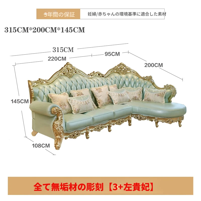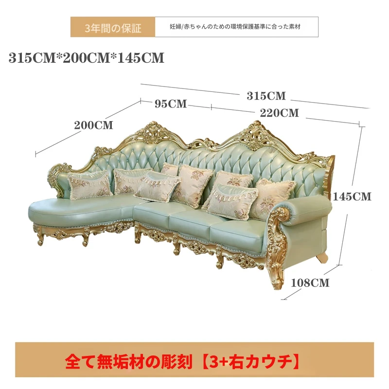 高級感あふれる欧風本革ソファセット|シャンパンゴールドの木彫りデザイン|1人掛けから4人掛けまで対応|贅沢なコーナーソファ|広々としたリビングにぴったりなヴィラスタイル!