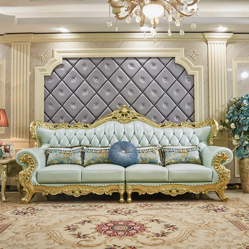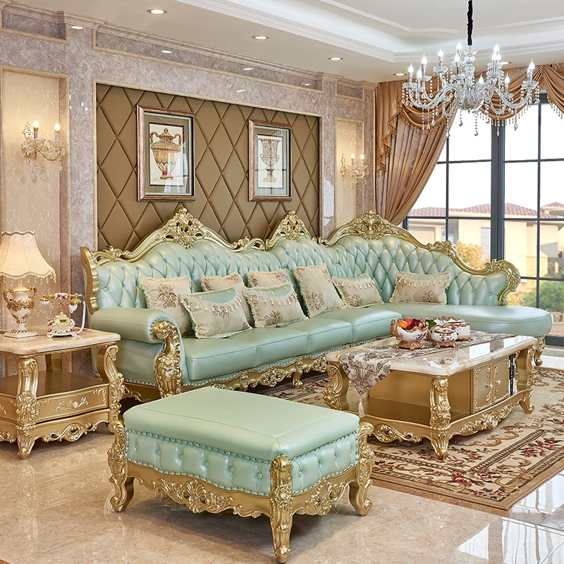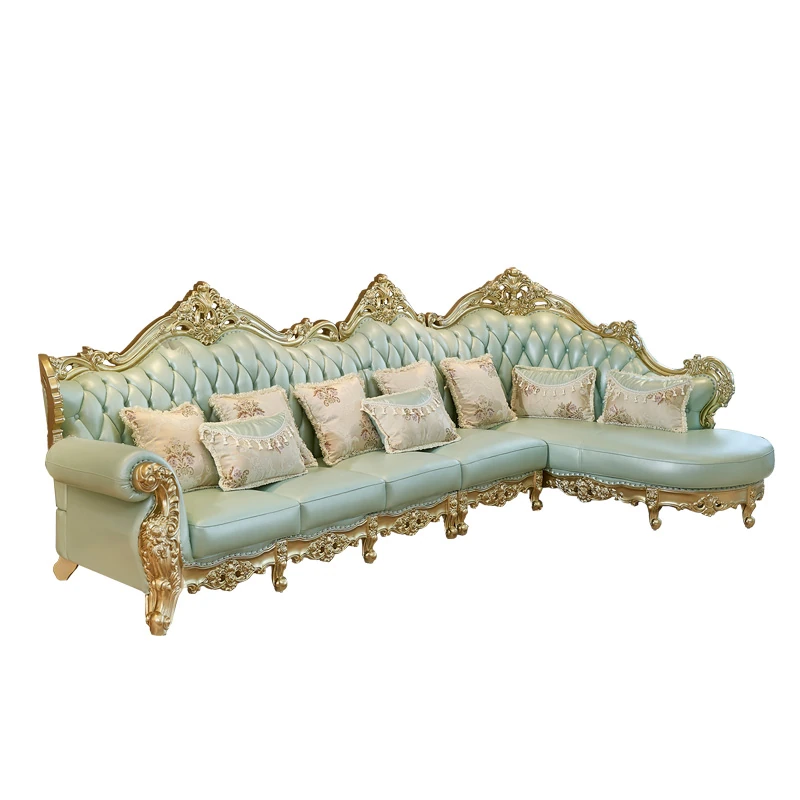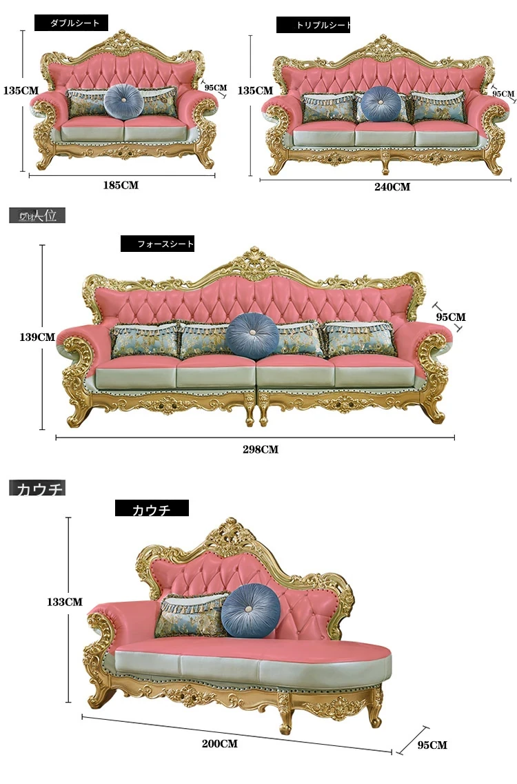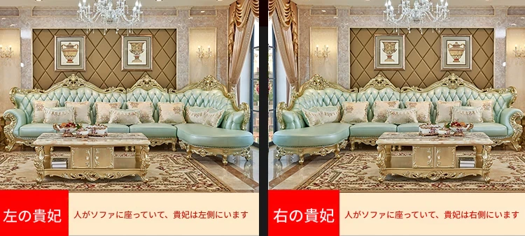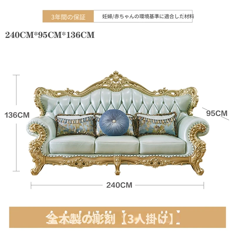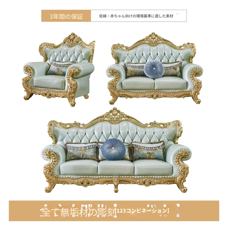 高級感あふれる欧風本革ソファセット|シャンパンゴールドの木彫りデザイン|1人掛けから4人掛けまで対応|贅沢なコーナーソファ|広々としたリビングにぴったりなヴィラスタイル!