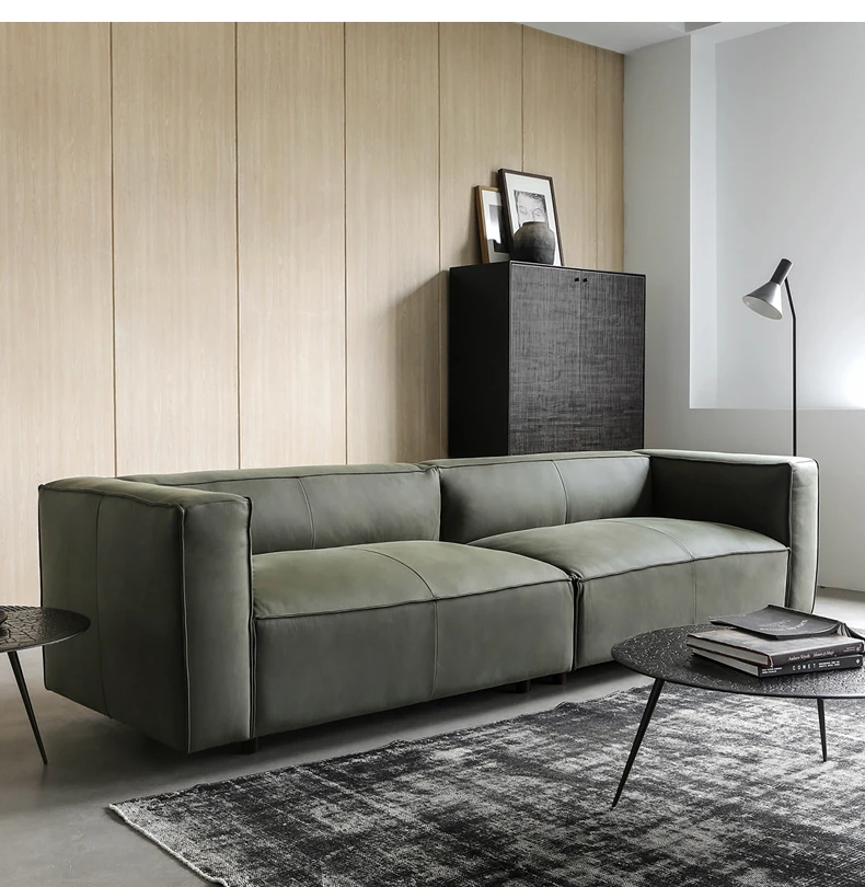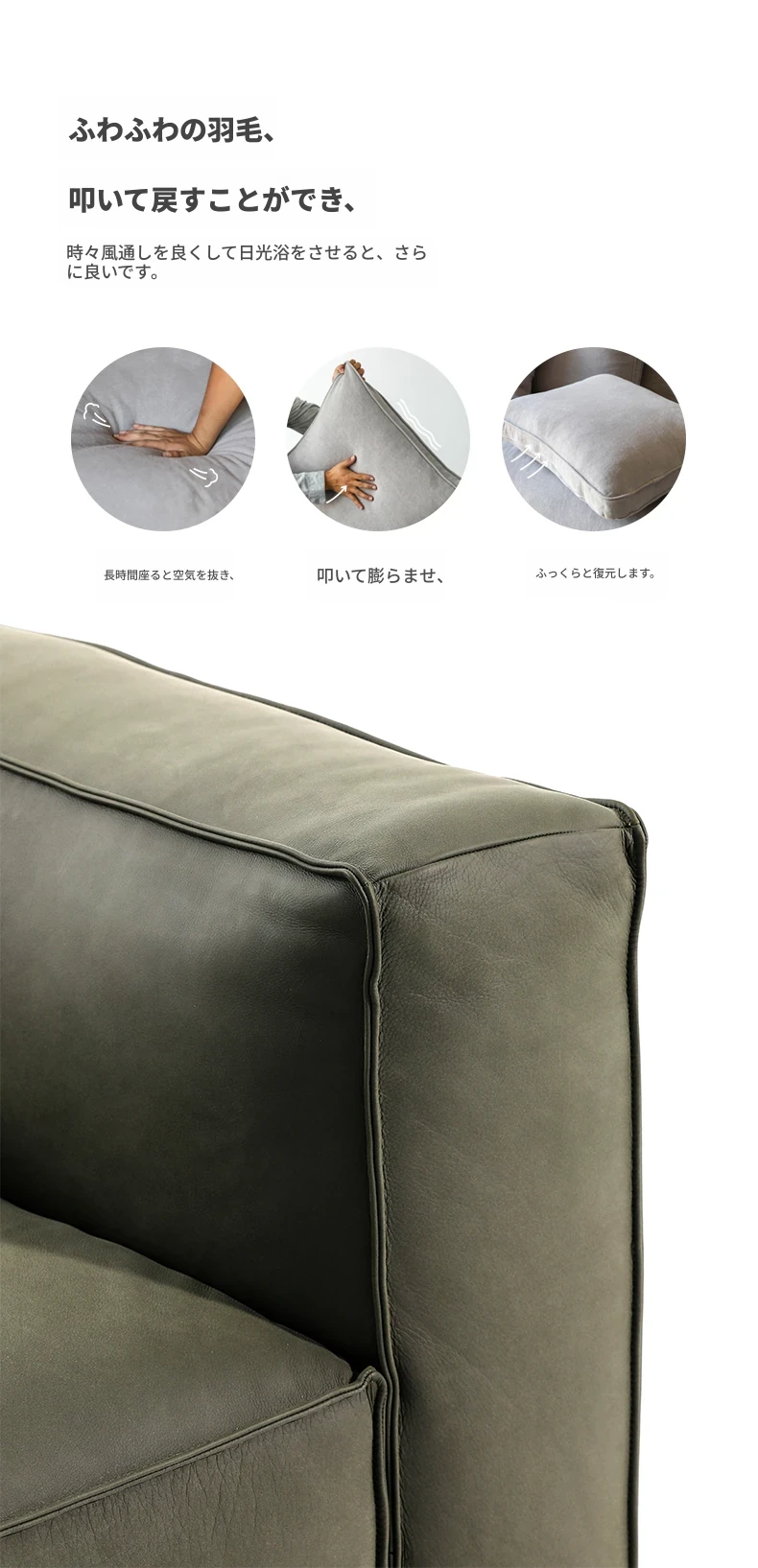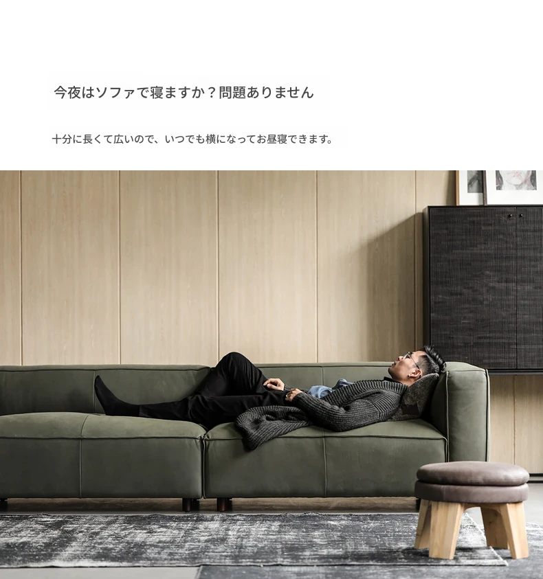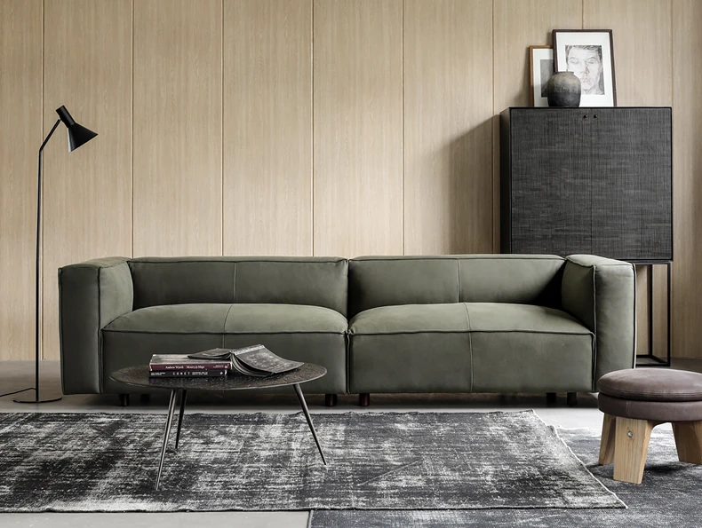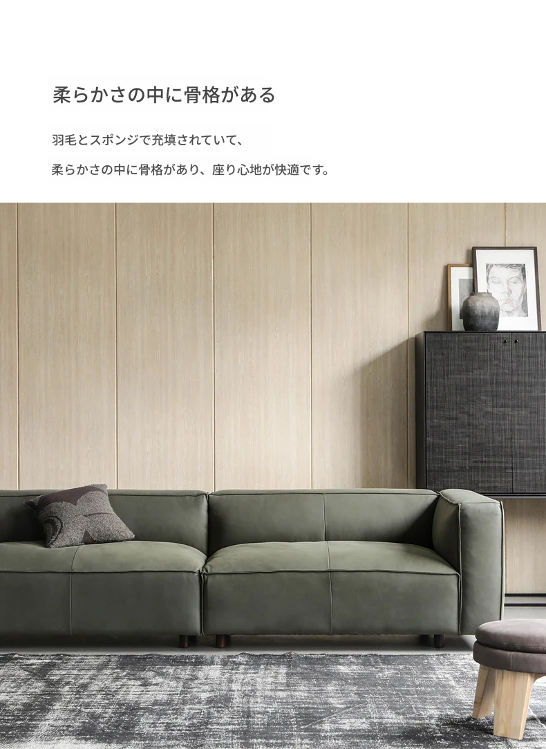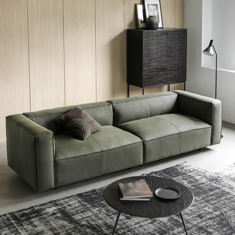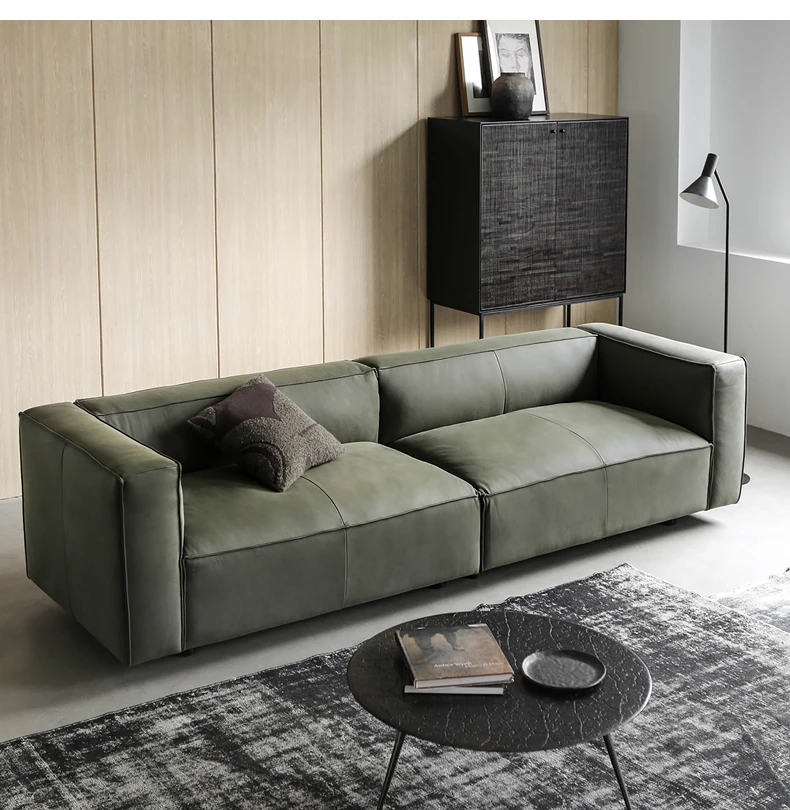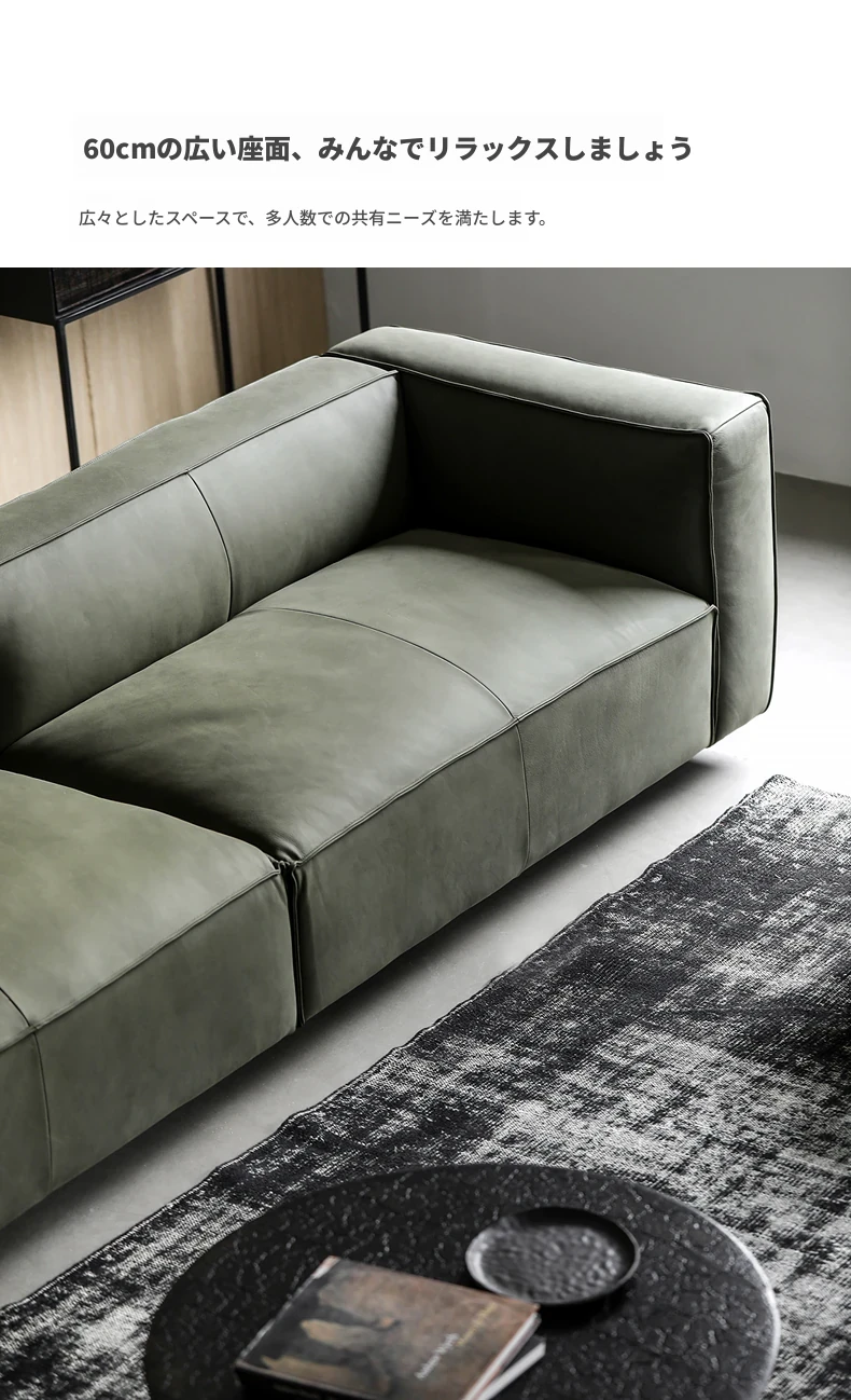 北欧のエレガンスを感じるNORHOR、英国の洗練されたデザインCAREZZA、イタリアンミニマリズムを体現したAREの本革4人掛けソファ - オリーブ色でインテリアを華やかに演出!