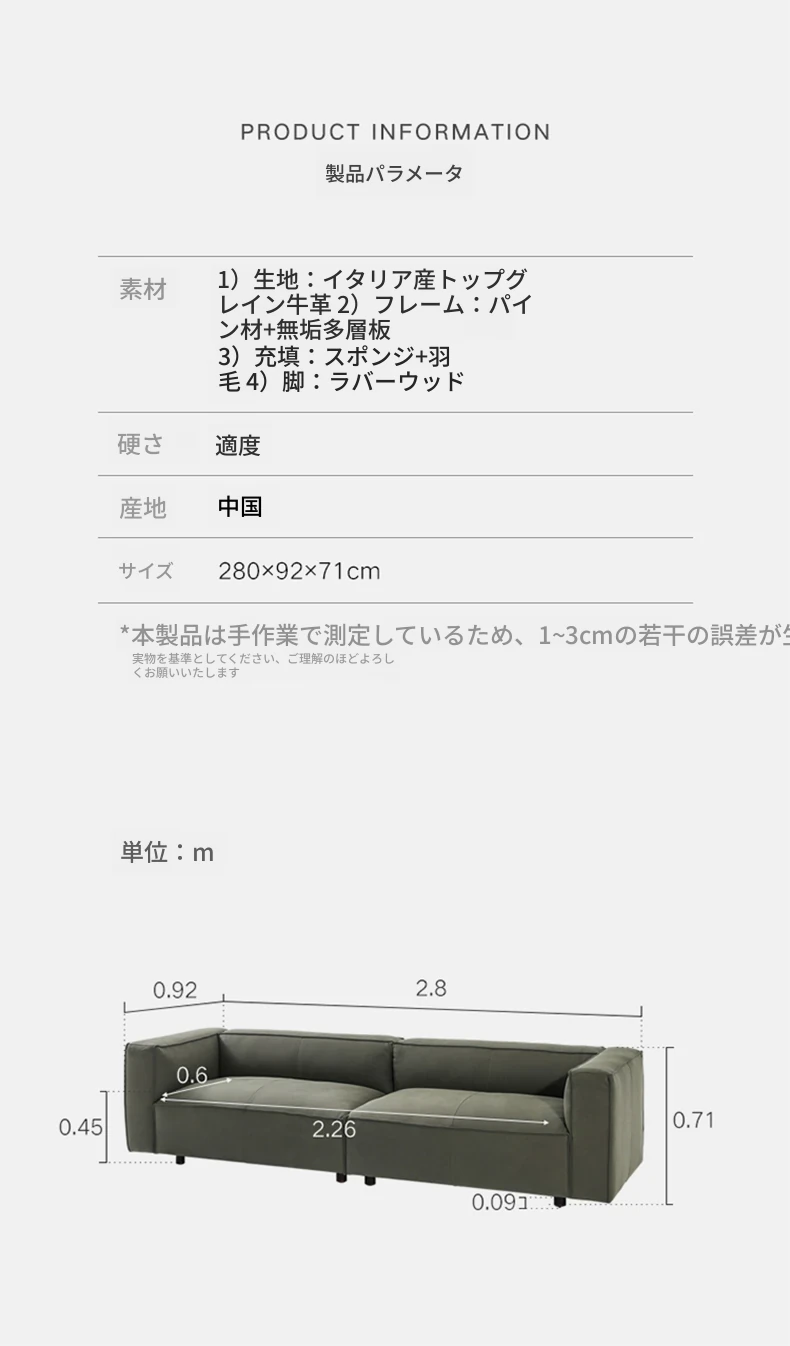 2024年新作!イタリアンミニマル本革ソファ - モダンなデザインで別荘全体をスタイリッシュに演出!リビングにぴったりの洗練された選択。