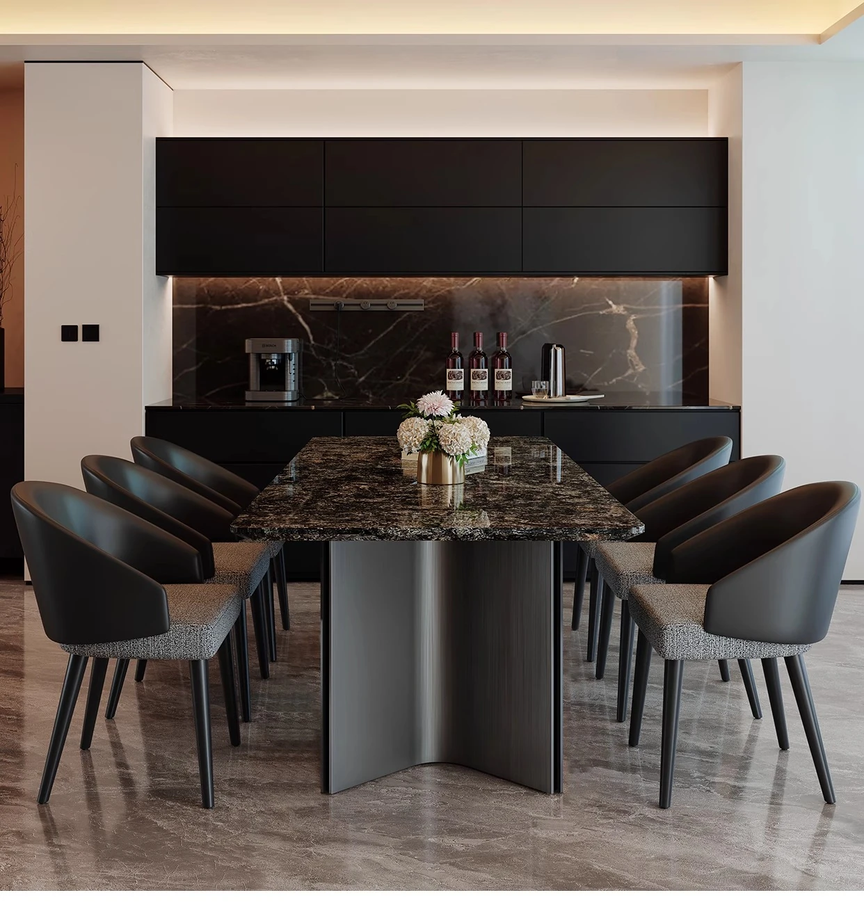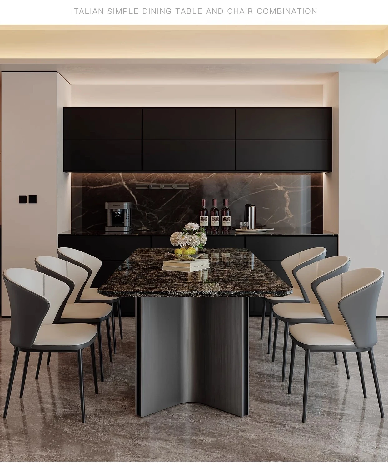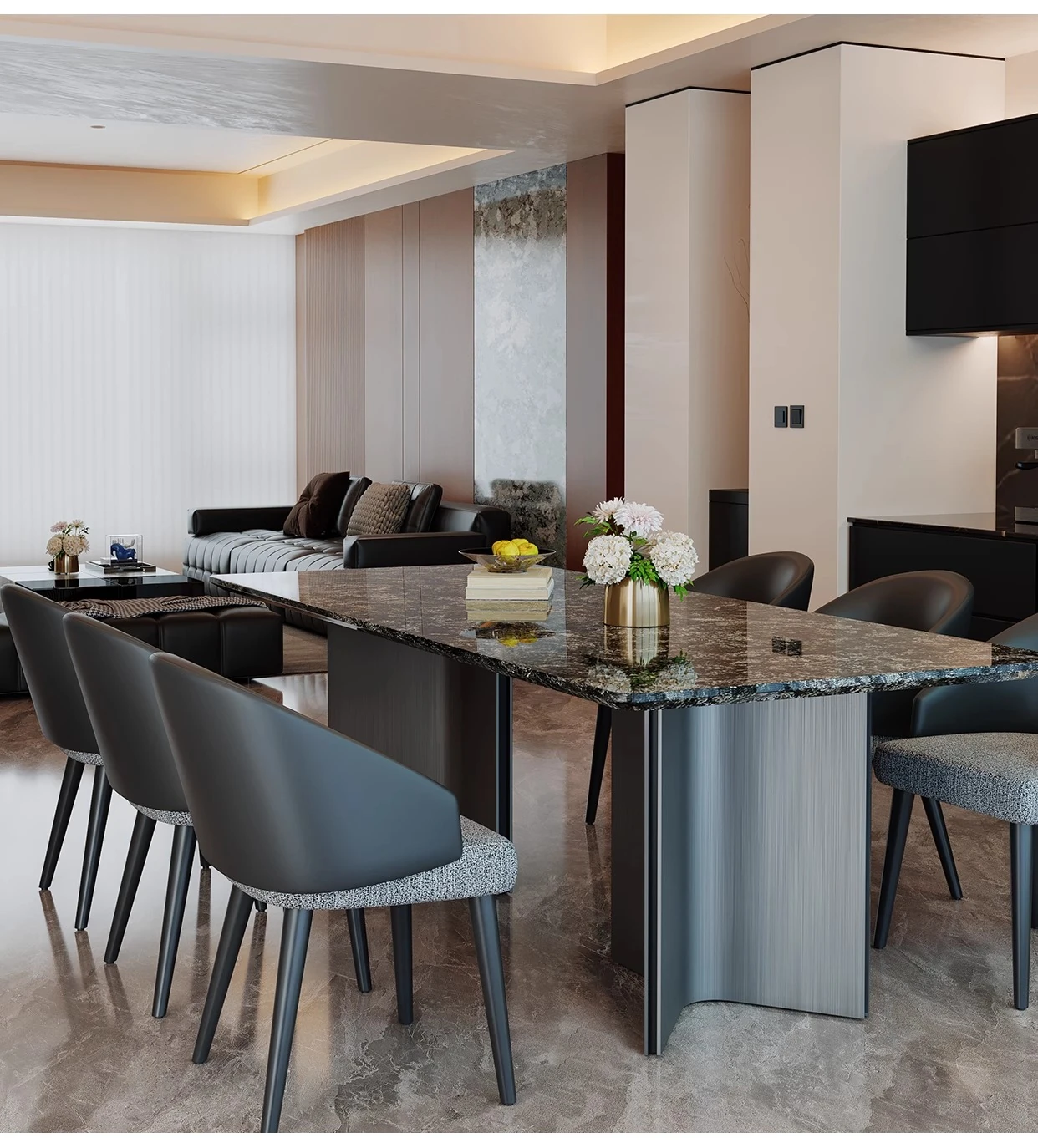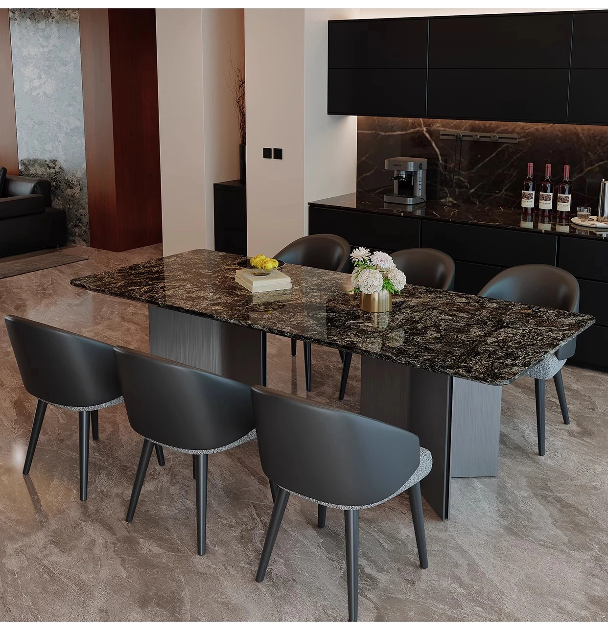 天然プラチナダイヤモンド豪華石製ダイニングテーブルセット - 大理石長方形テーブル、別荘や高級フラットに最適な高級ダイニングテーブル。上質な素材で特別な食事のひとときを演出します!