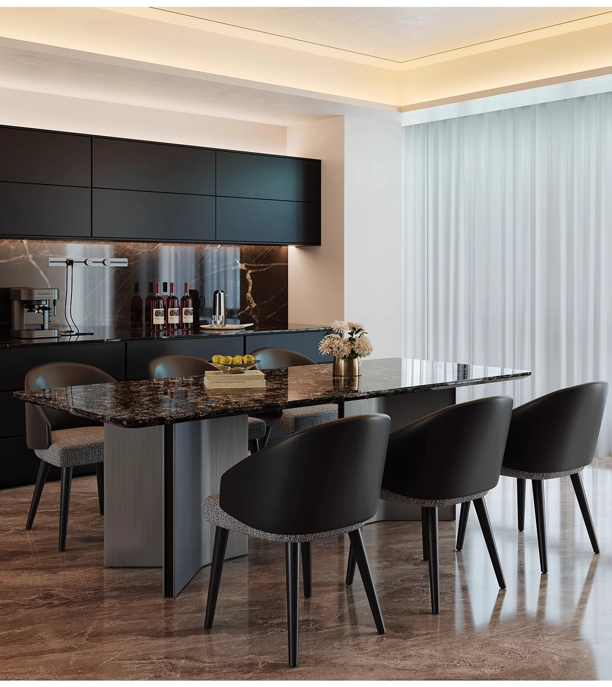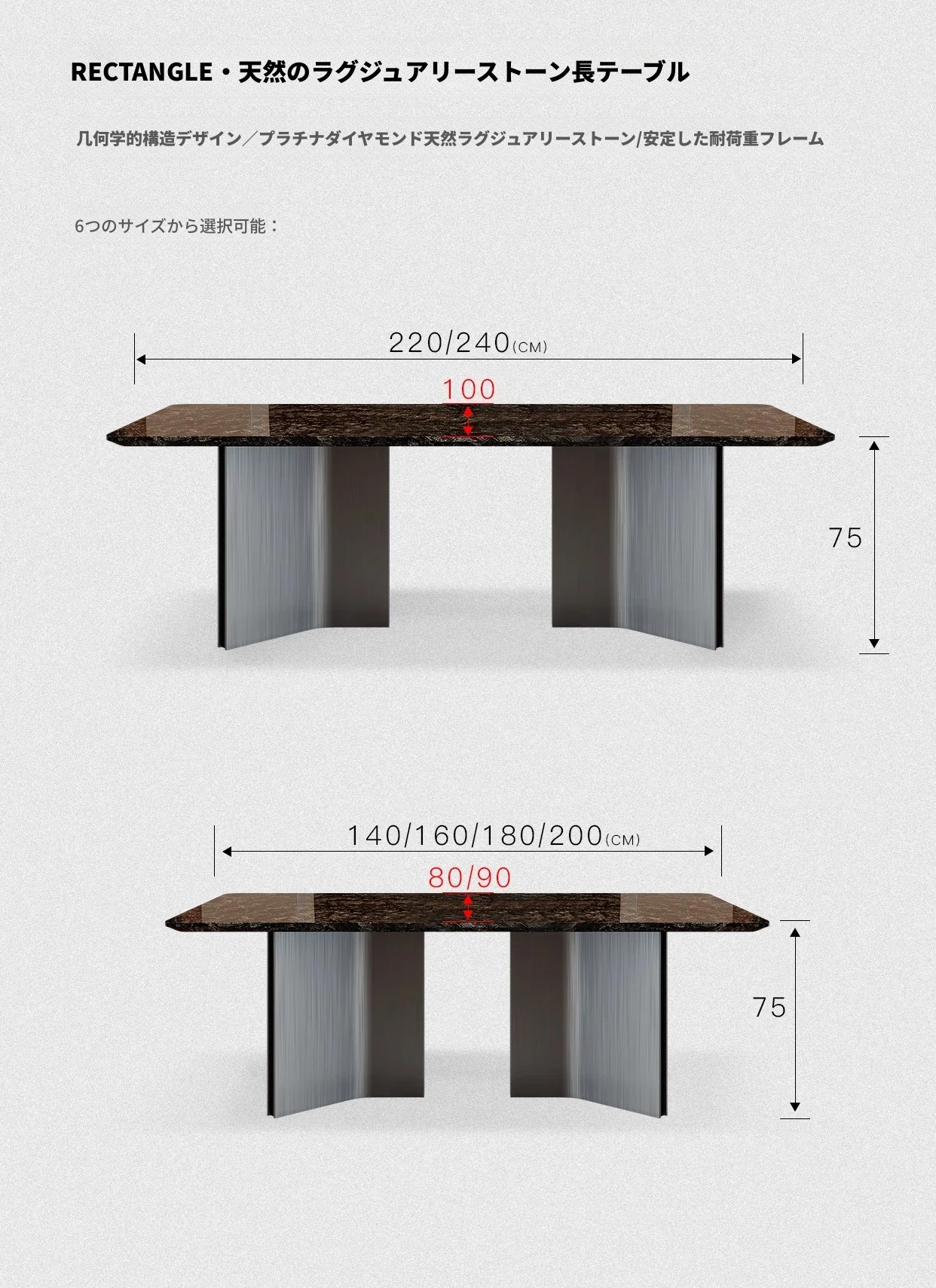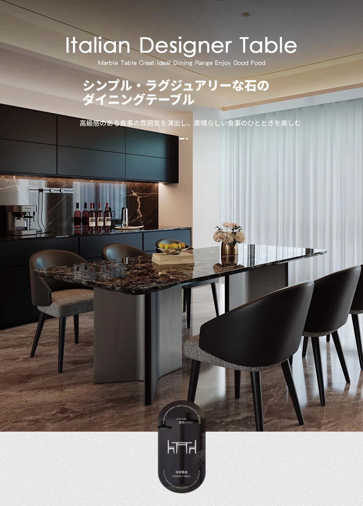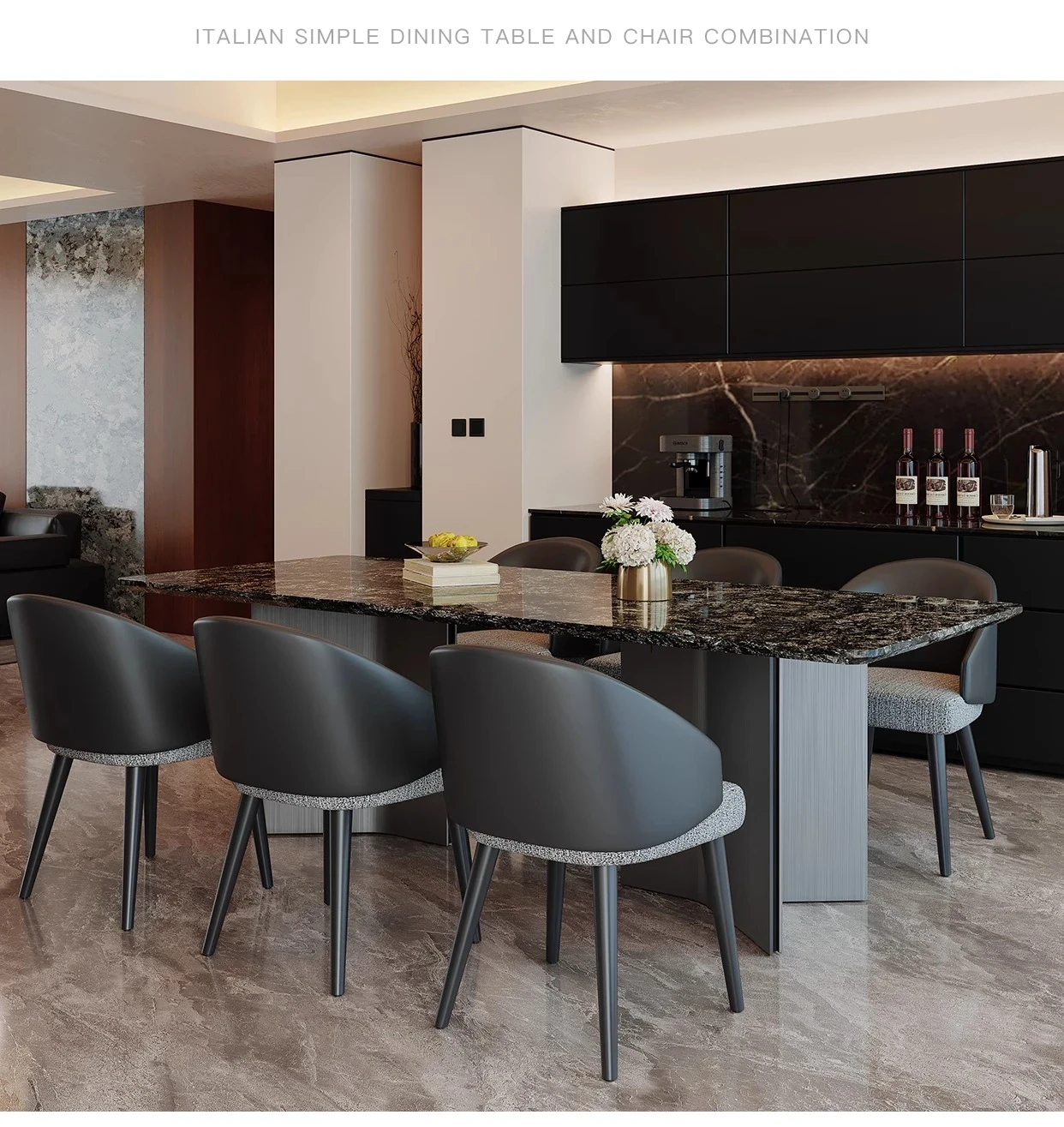 天然プラチナダイヤモンド豪華石製ダイニングテーブルセット - 大理石長方形テーブル、別荘や高級フラットに最適な高級ダイニングテーブル。上質な素材で特別な食事のひとときを演出します!