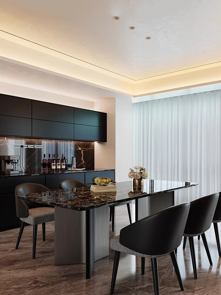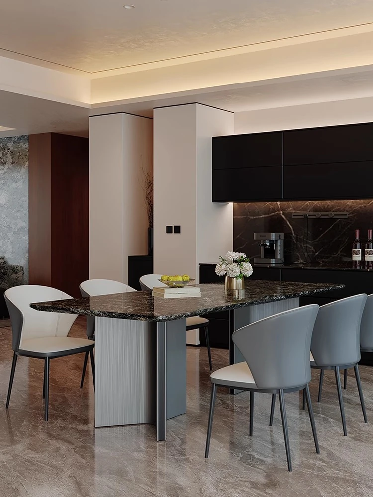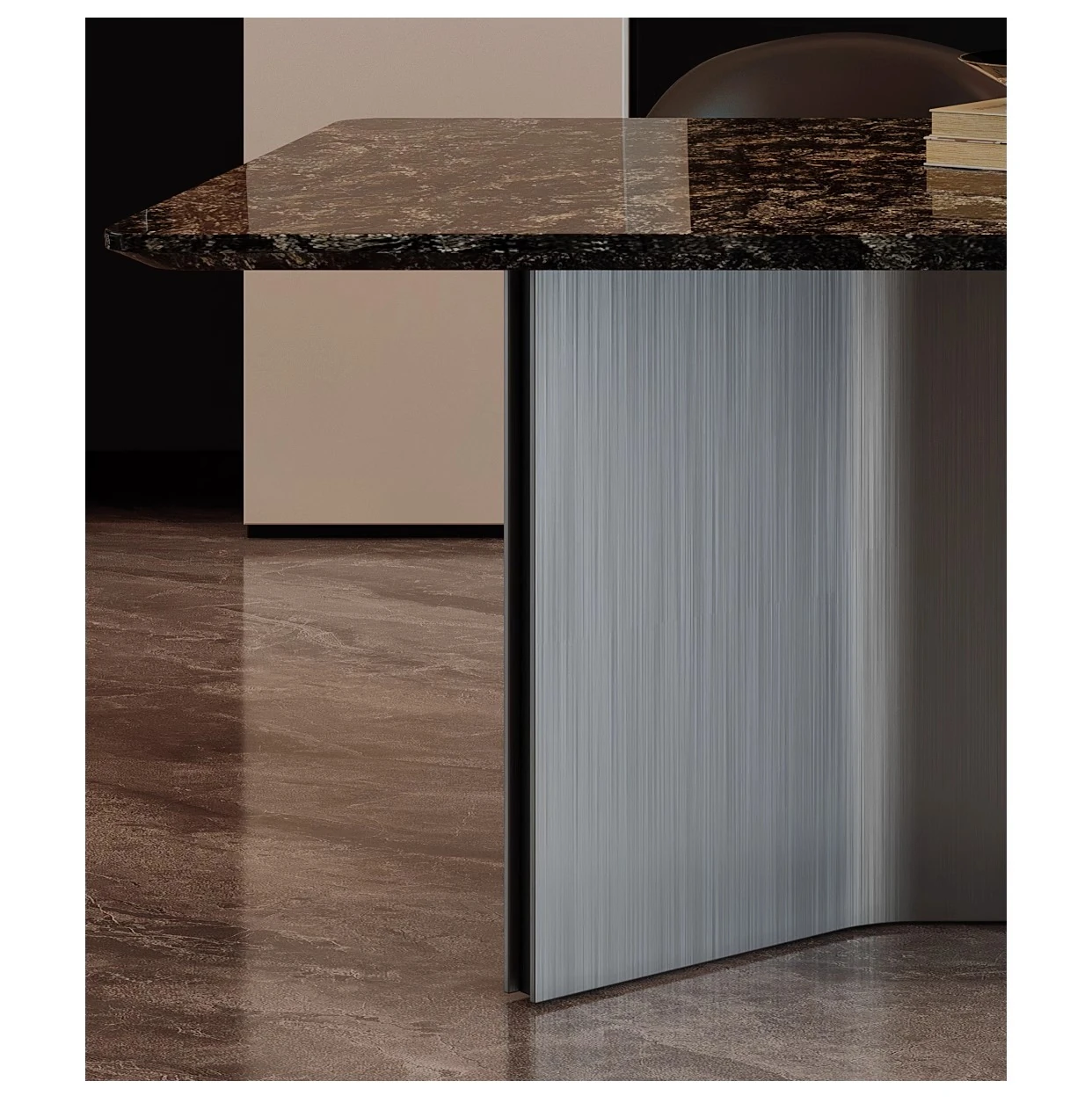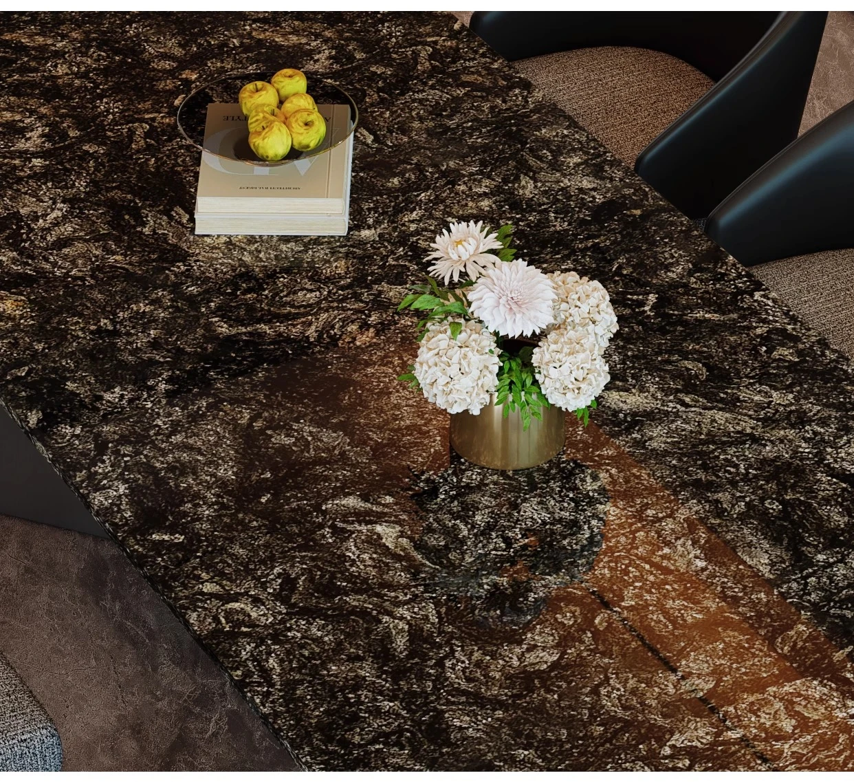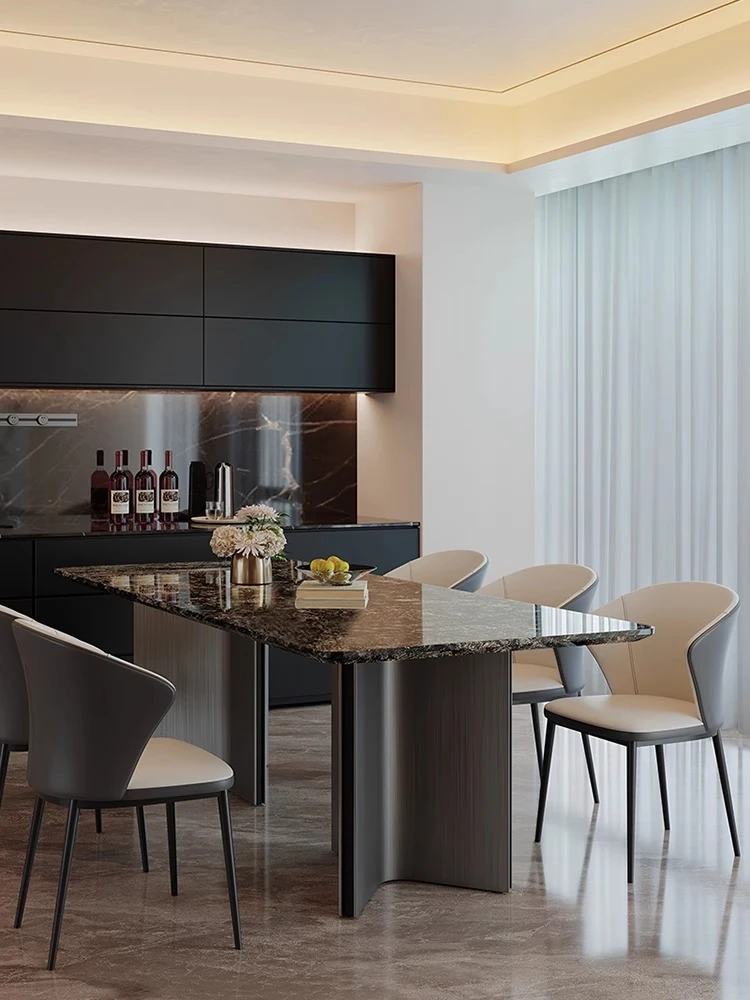 天然プラチナダイヤモンド豪華石製ダイニングテーブルセット - 大理石長方形テーブル、別荘や高級フラットに最適な高級ダイニングテーブル。上質な素材で特別な食事のひとときを演出します!