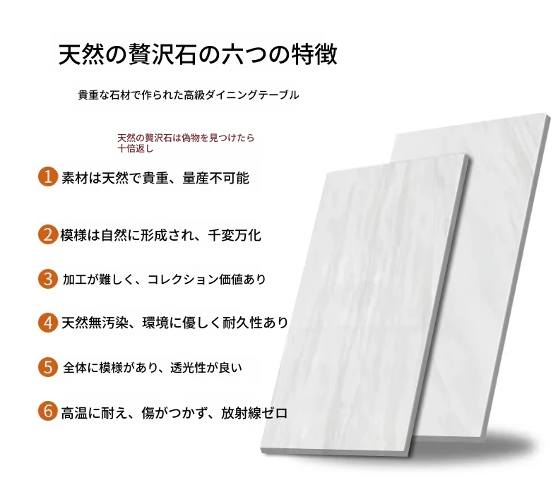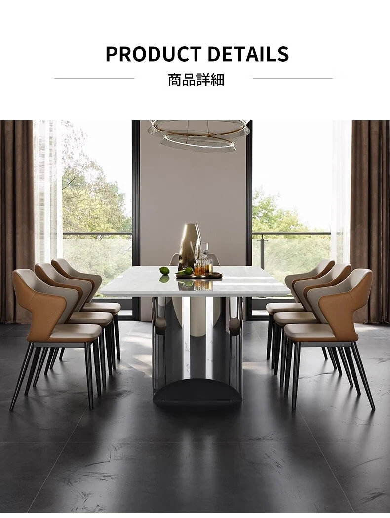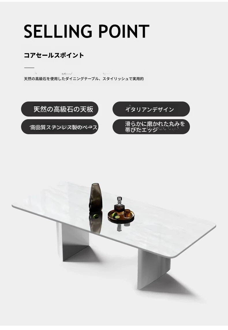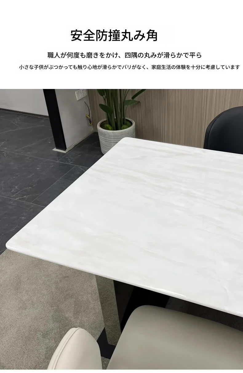 ラグジュアリーなロイヤルホワイト大理石ダイニングテーブル - モダンでシンプルなデザイン、上質な雰囲気を演出。スタイリッシュな長方形テーブルとチェアのセットで、特別なひとときをお楽しみください。