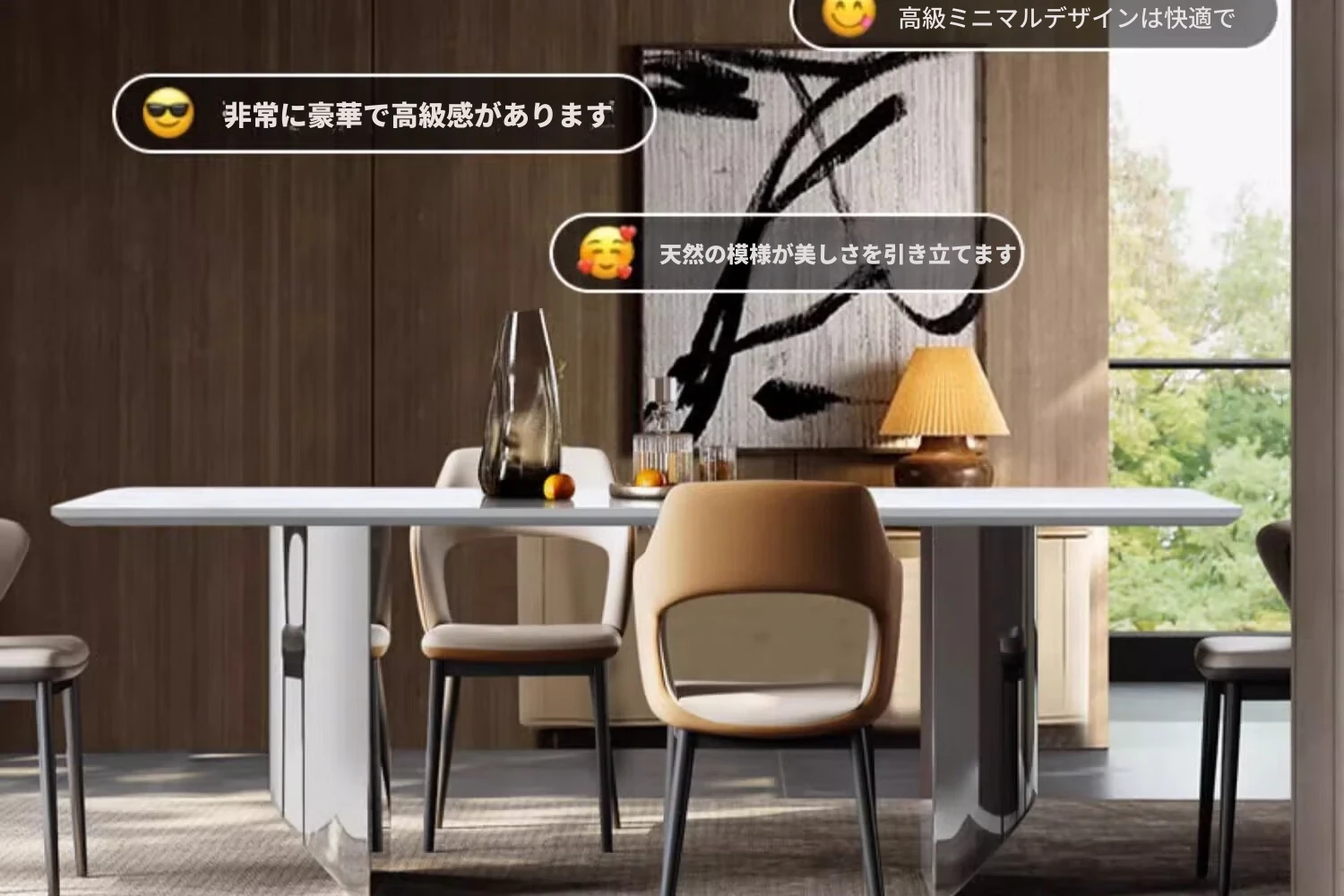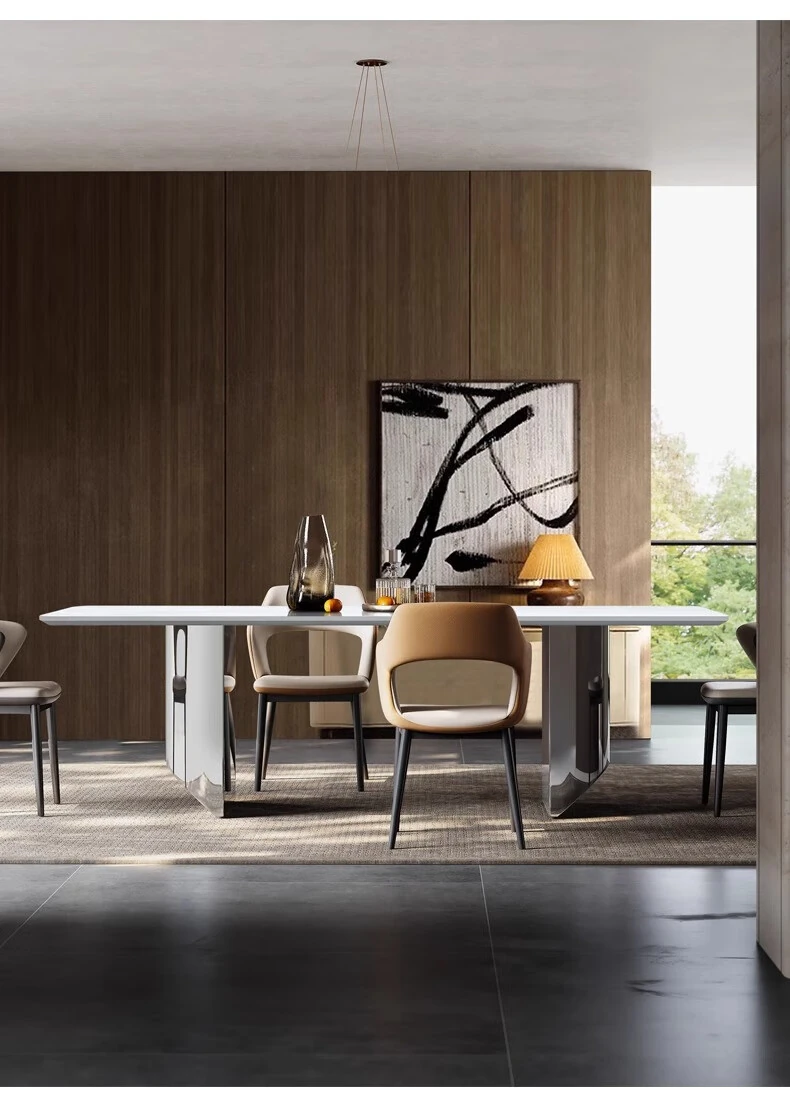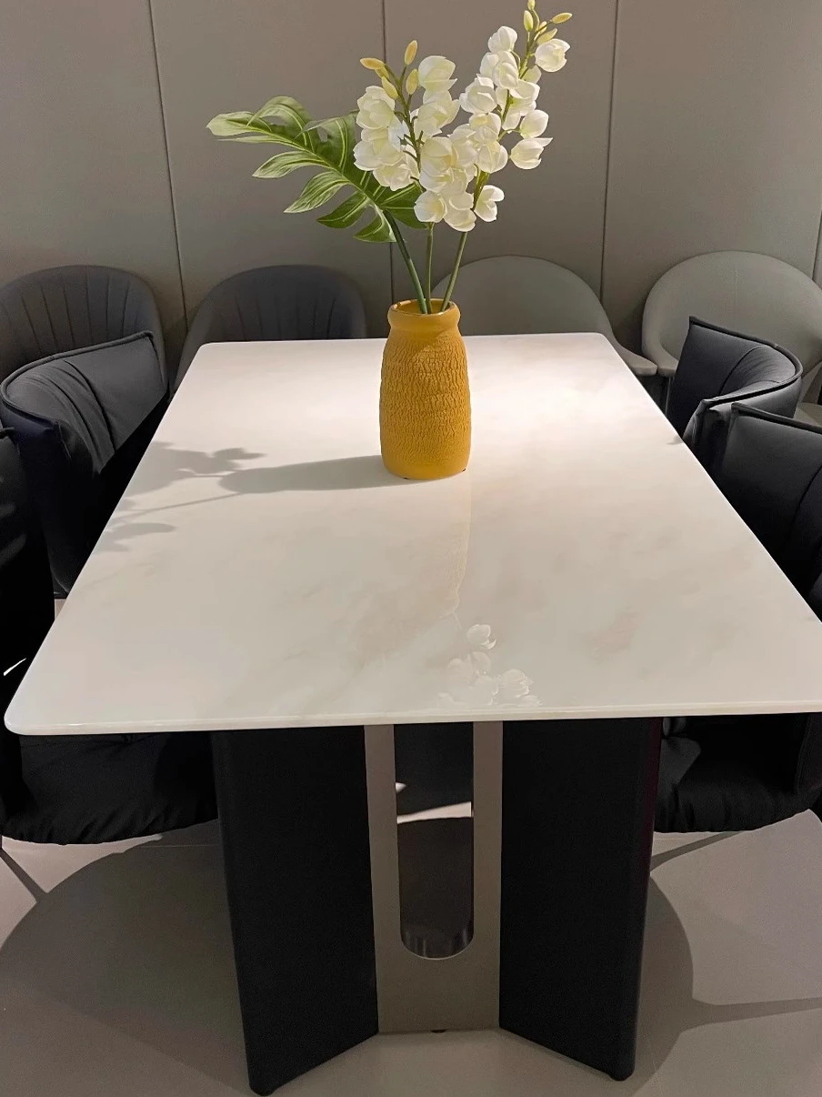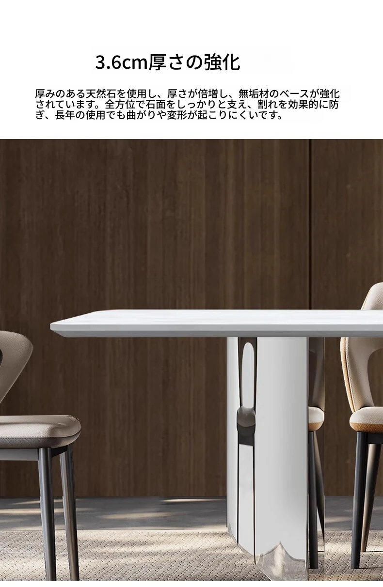 ラグジュアリーなロイヤルホワイト大理石ダイニングテーブル - モダンでシンプルなデザイン、上質な雰囲気を演出。スタイリッシュな長方形テーブルとチェアのセットで、特別なひとときをお楽しみください。