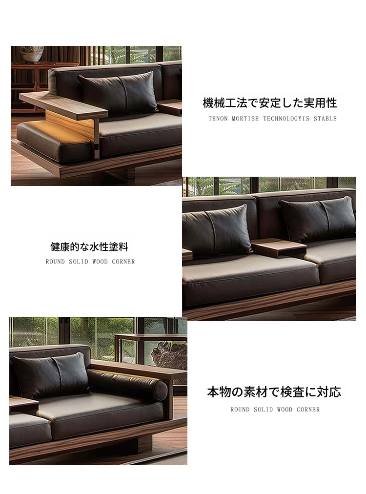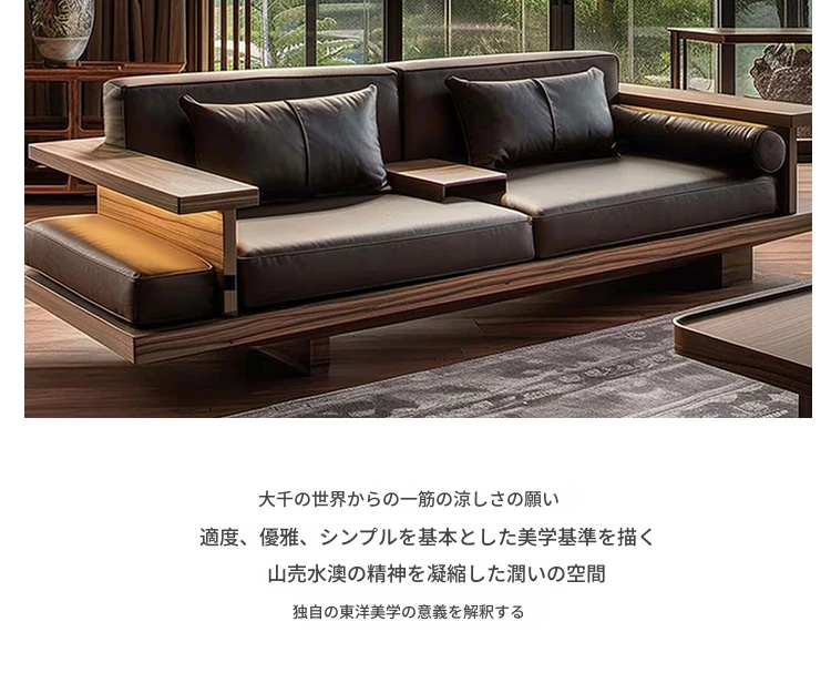 新中式デザインのブラックウォールナットとホワイトアッシュのソファ - プレミアムな禅の雰囲気を演出する実木製家具。家庭用、ホテル、民宿、オフィスに最適な高級ソファです。