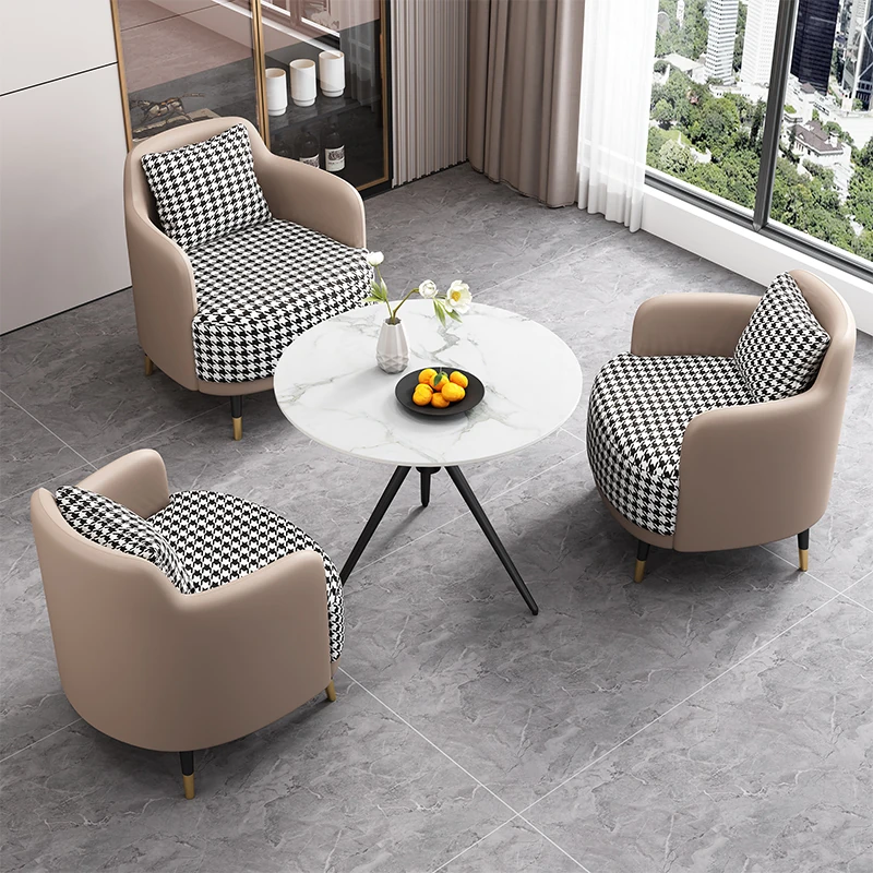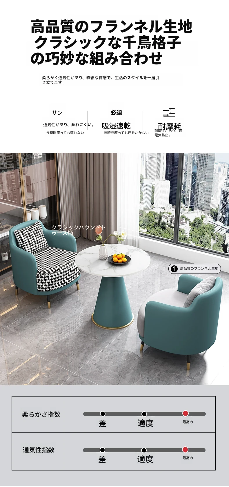 外深い青皮内千鳥格子布2+1 2椅子と60雪山ホワイトストーンプレート/e56