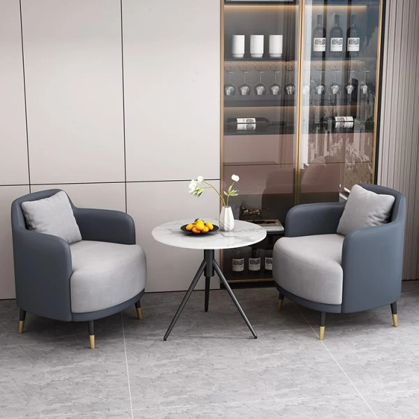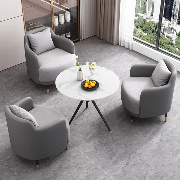 外ライトグレー皮内ライトグレー生地2+1 2椅子と60雪山ホワイトストーンプレート/e56