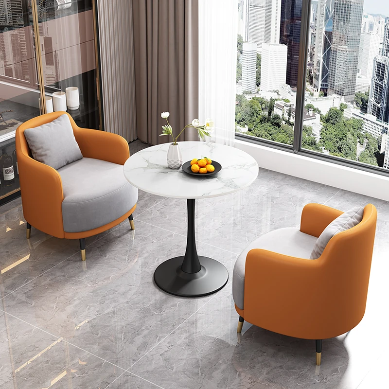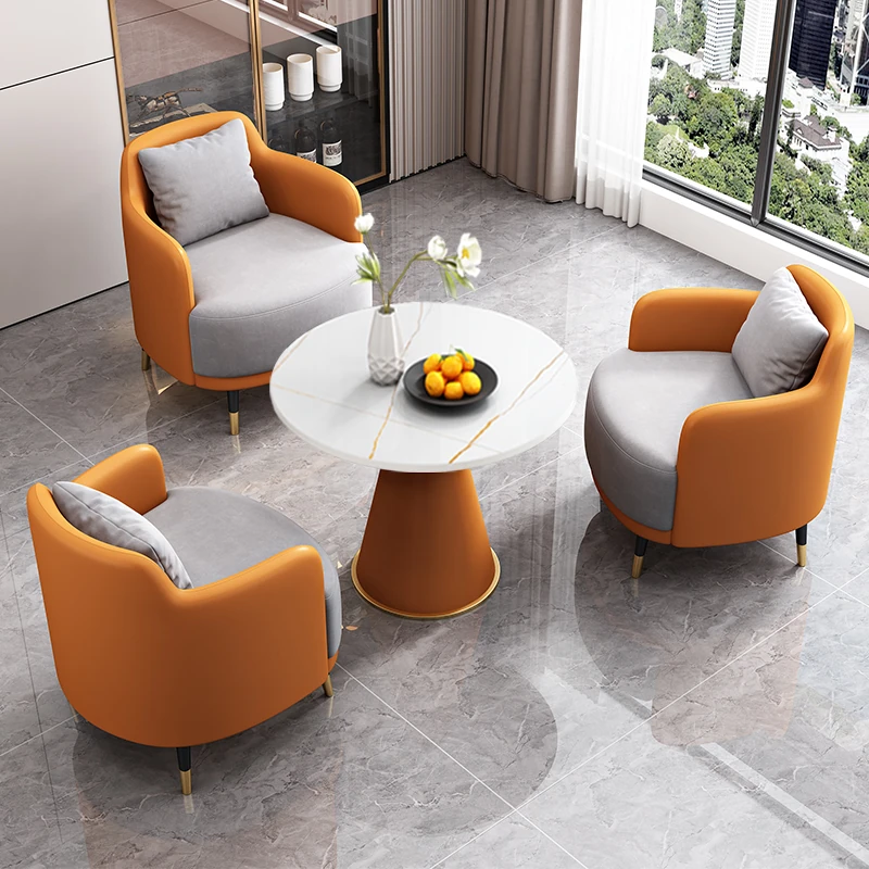 外オレンジレザー内グレー生地2+1 2椅子と60雪山ホワイトストーンプレート/cdc