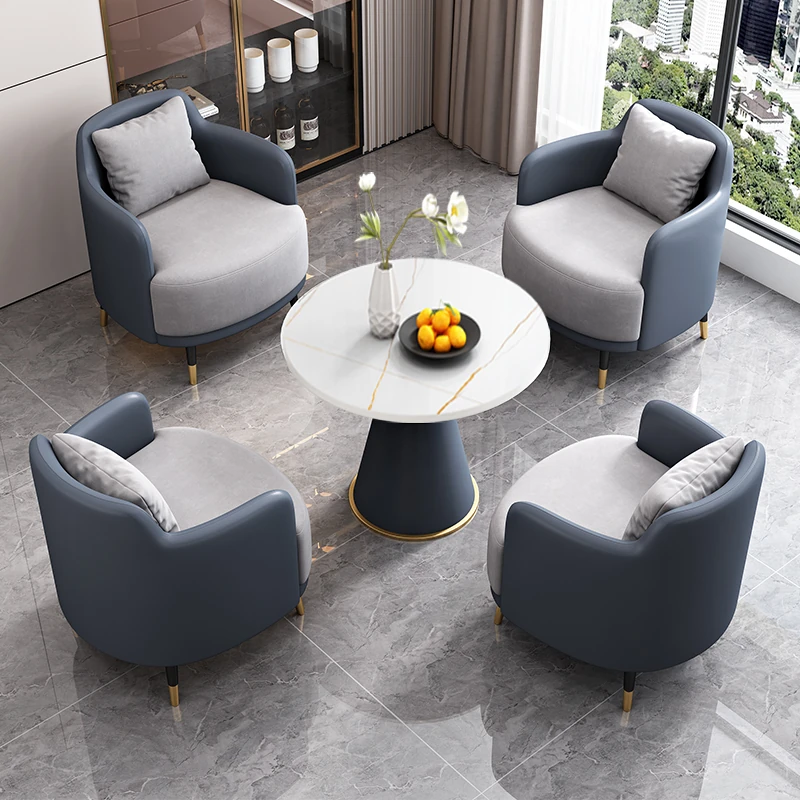外深い青皮内グレー生地3+1 3椅子と60雪山ホワイトストーンプレート/cdc
