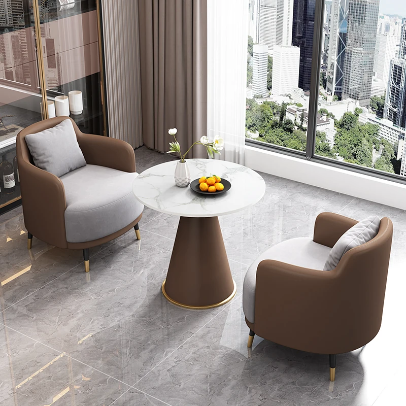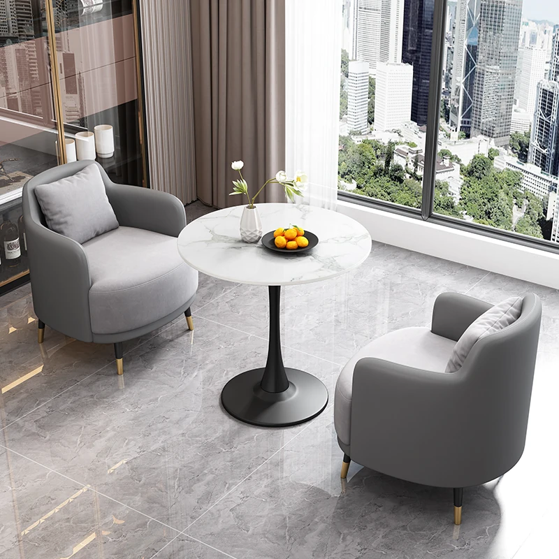 外コーヒー皮内ライトグレー生地2+1 2椅子と60雪山ホワイトストーンプレート/e96