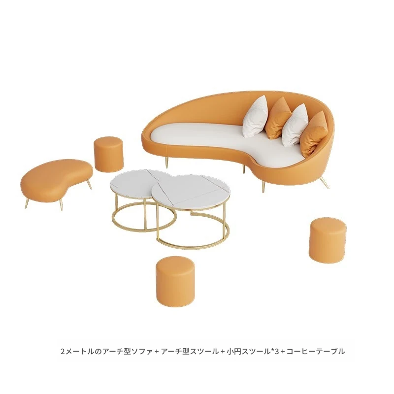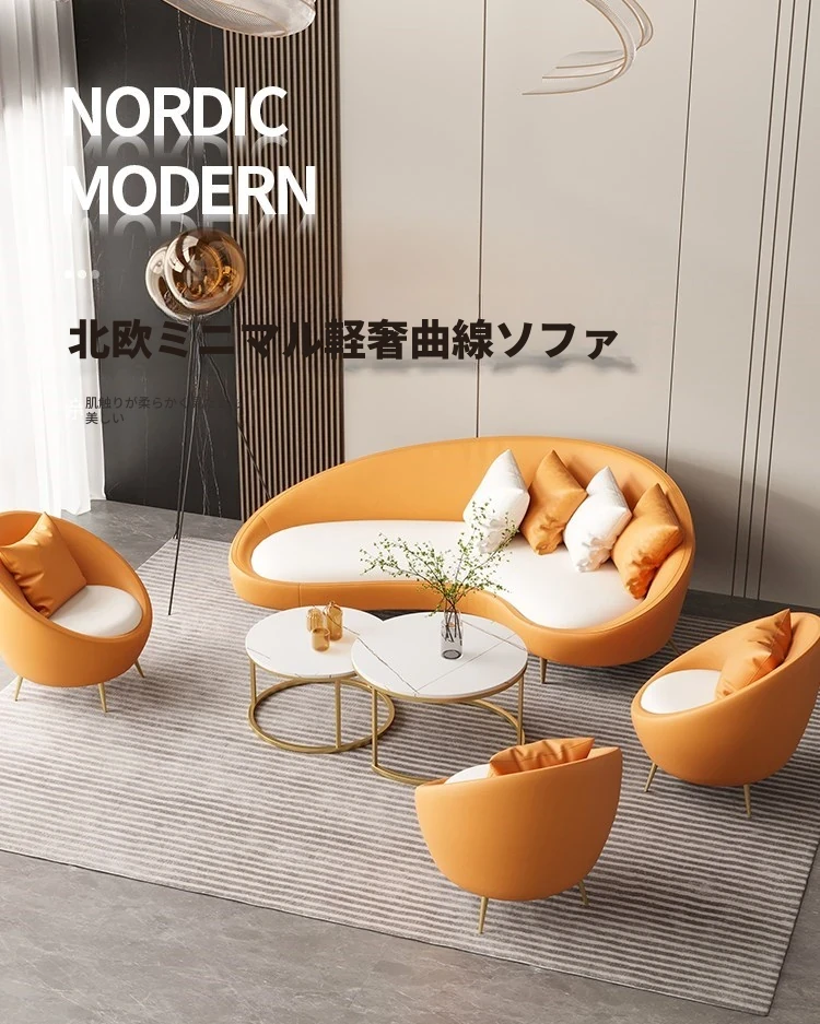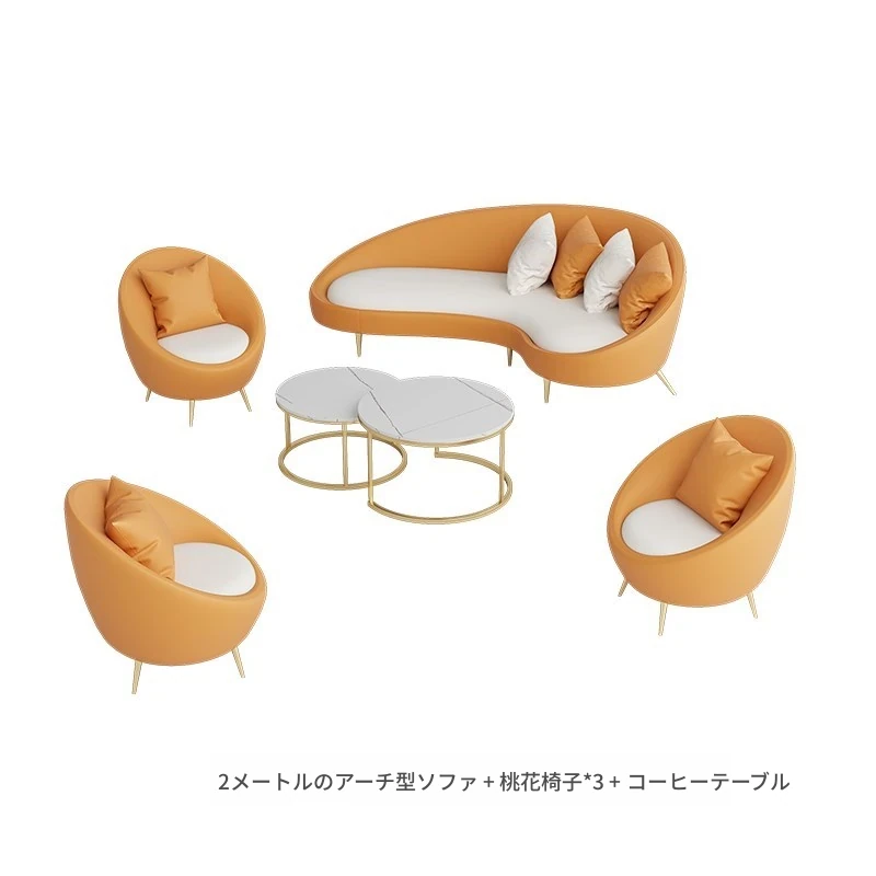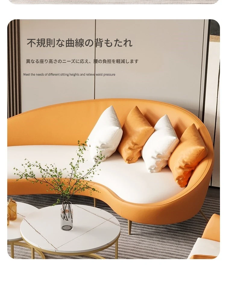 シンプルでモダンなアーチ型のINS風ラグジュアリーサロン用受付ソファ|アパレルショップや不動産販売所、ネイルサロンにも最適な洽談用ソファ!快適さとスタイルを兼ね備えた一品。