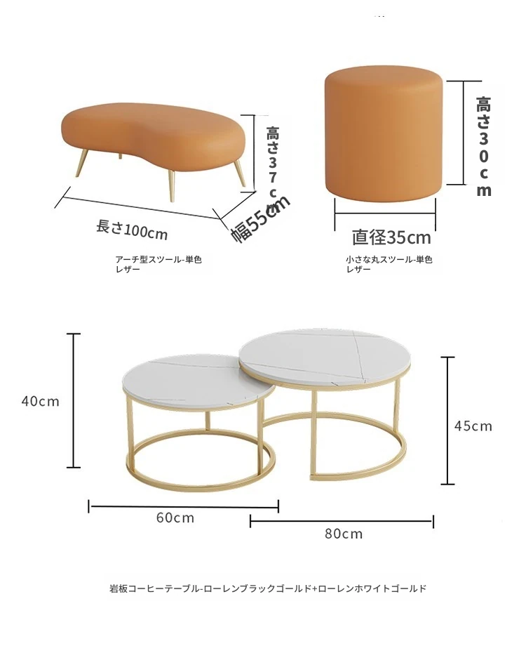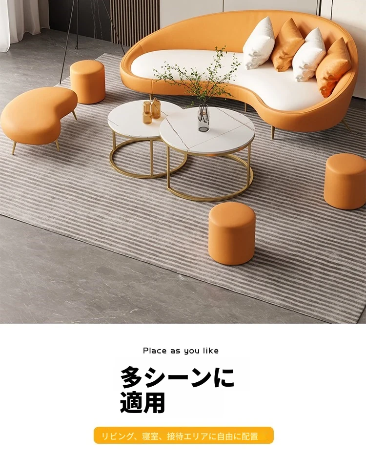 3人用ソファ+アーチ型ベンチ+円形ベンチ*3+コーヒーテーブル