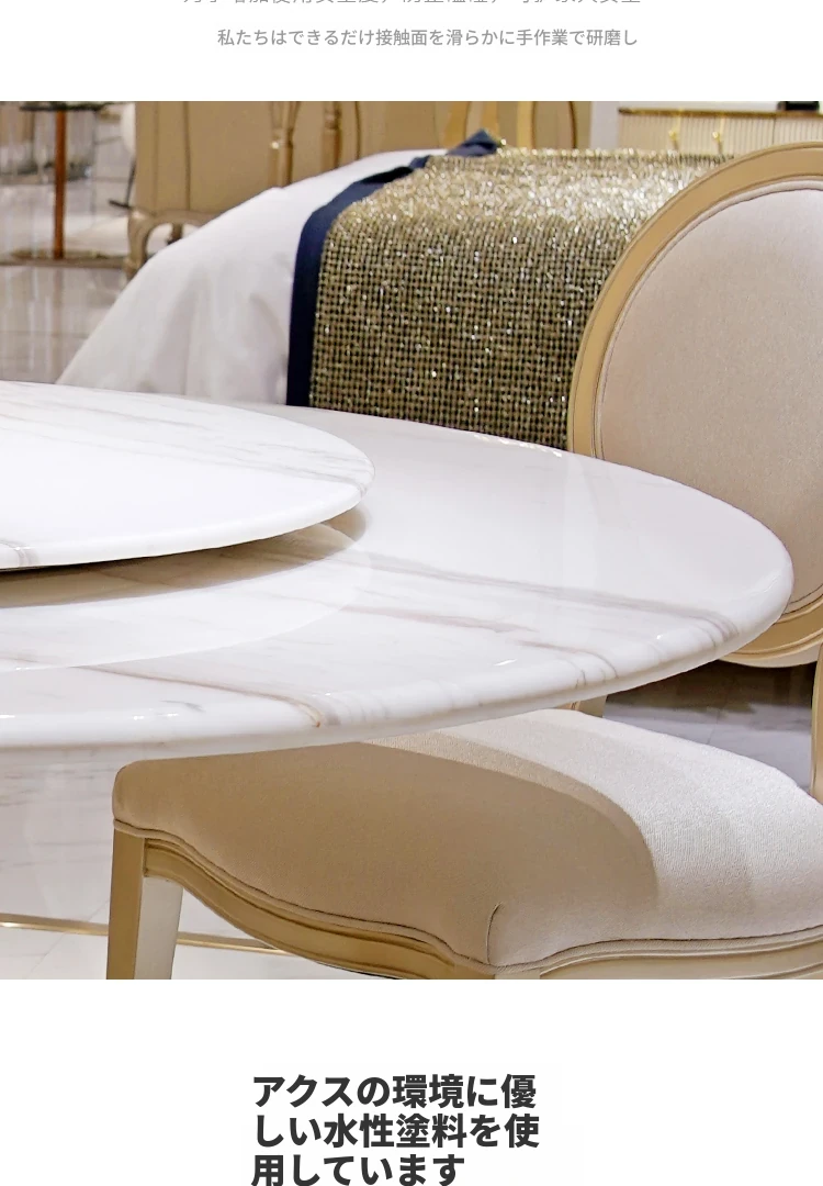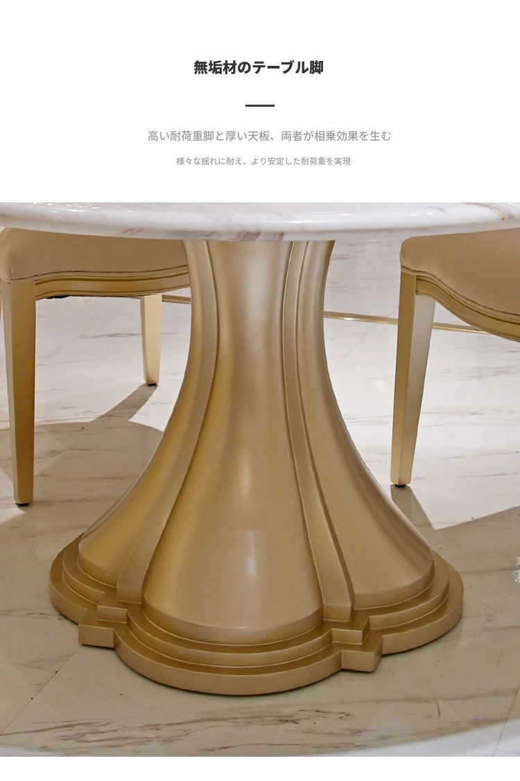 高級感溢れる欧風ダイニングテーブルセット!1.5mの天然大理石と木彫りの美しいデザイン、シャンパンゴールドの華やかな仕上げで、特別な食卓を演出します。家族や友人との素敵なひとときをお楽しみください。