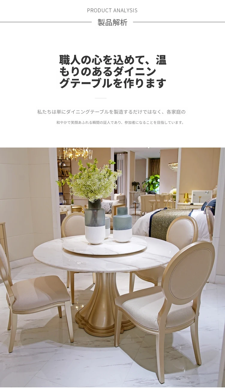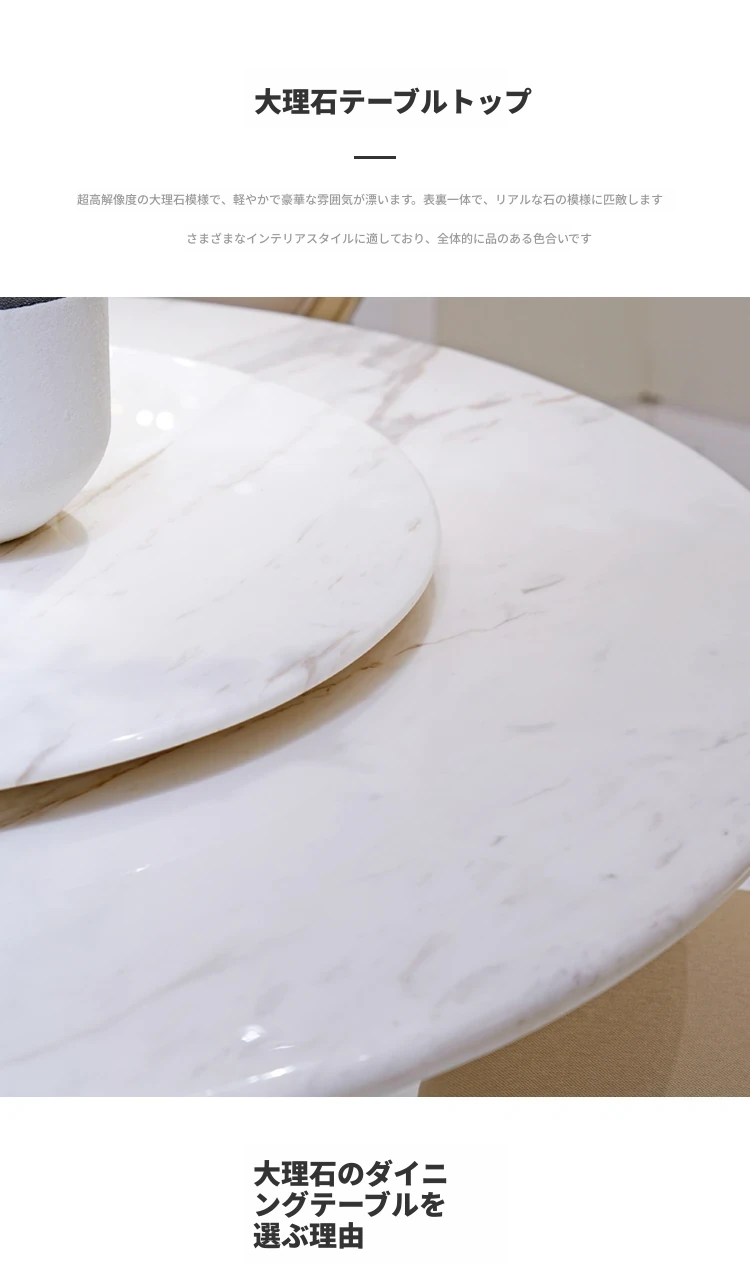ジェファンシー大理石円卓 無垢材ダイニングテーブル 回転式プレート付き 家庭用 シンプルでエレガントなデザイン IH対応 快適な食事空間を演出するラグジュアリーな円形テーブル