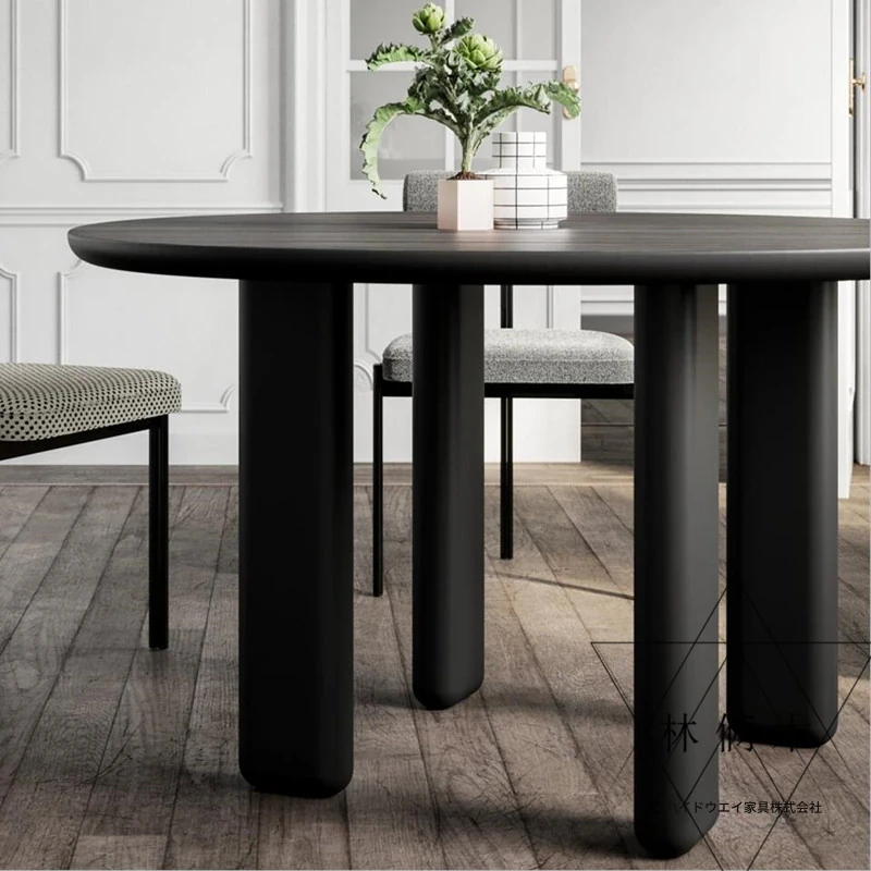 ブラックオークの長方形ダイニングテーブル&ラウンドテーブル - モダンでシンプルな高級塗装仕上げ、クリエイティブな個性を引き立てる会議テーブルや商談テーブルに最適!
