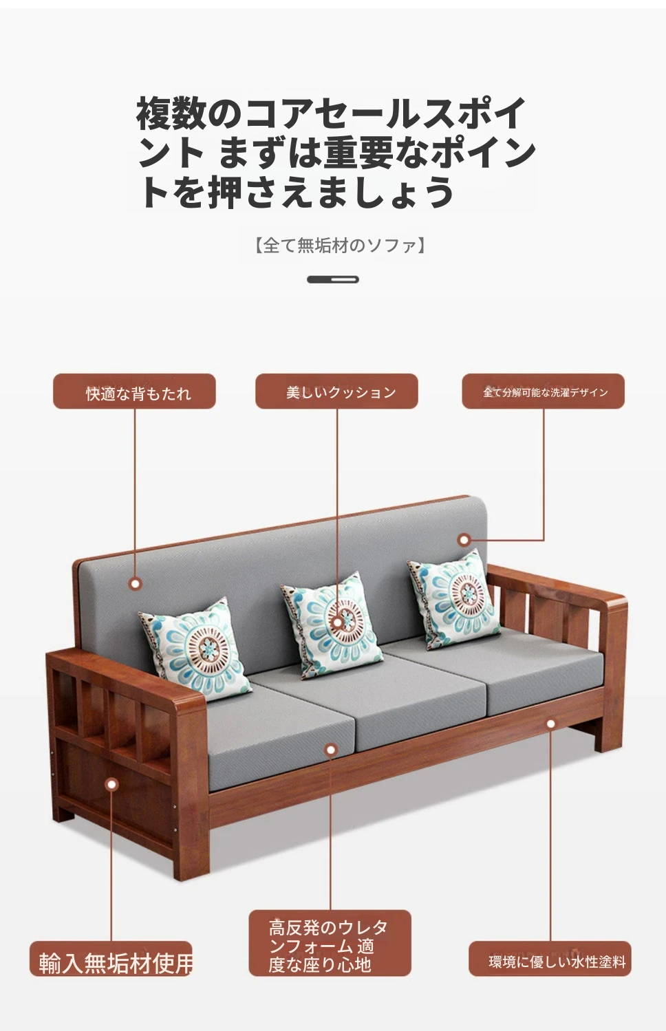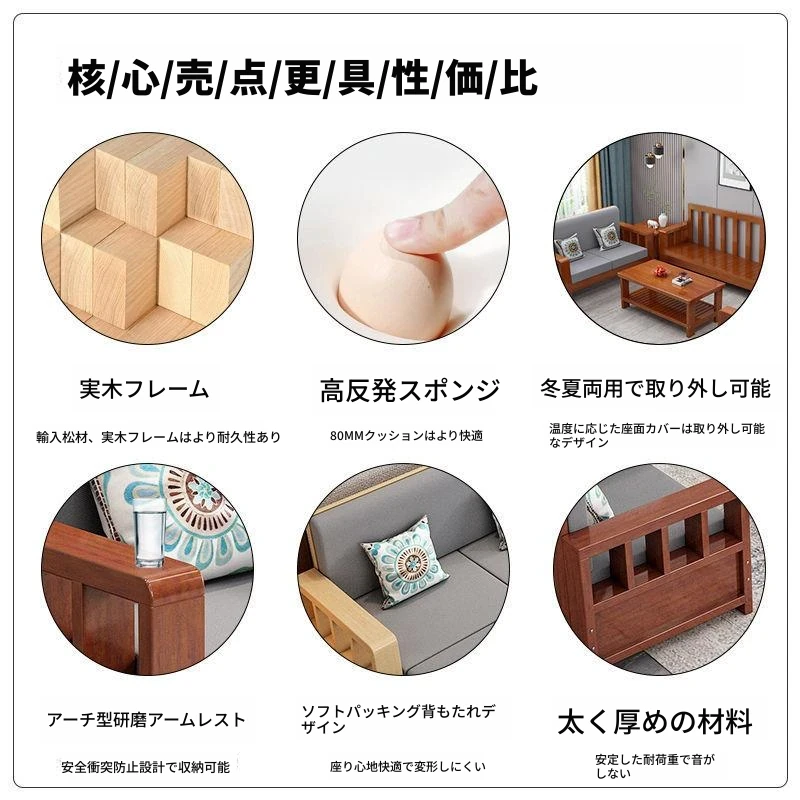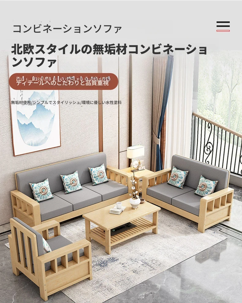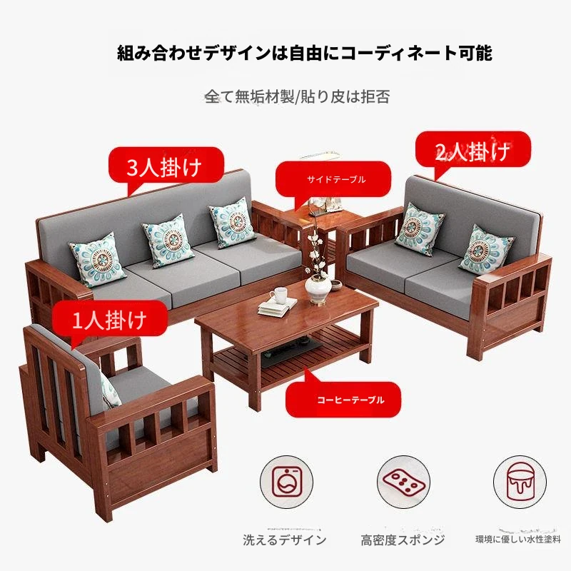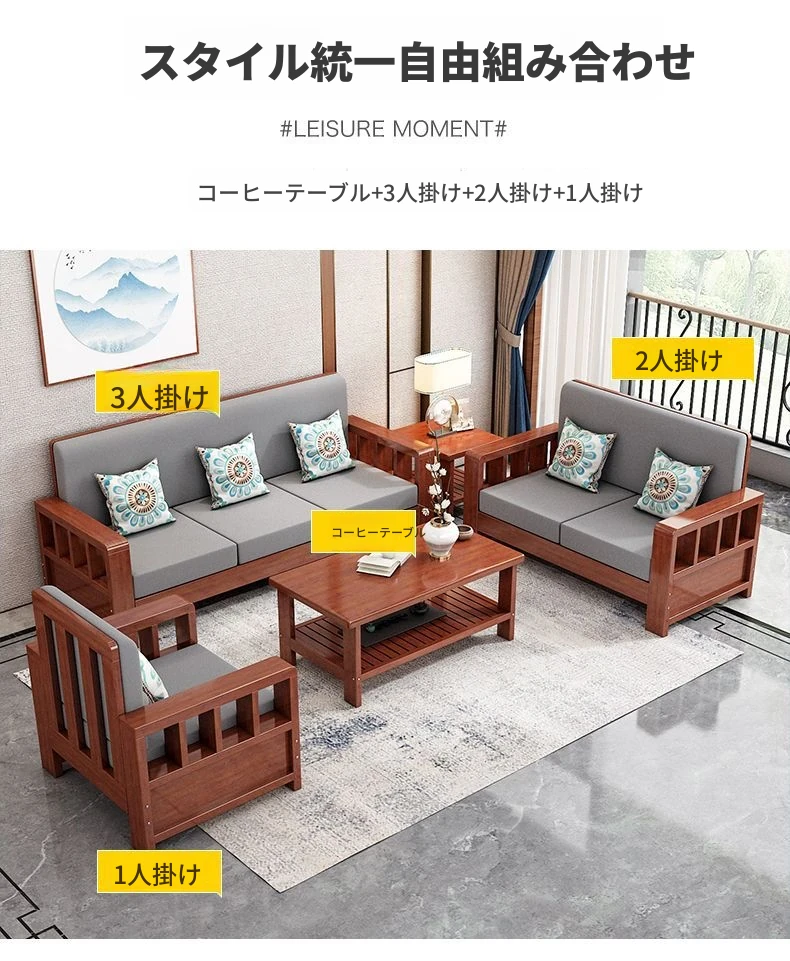 新中式の無垢材ソファセット - コンパクトで洗練されたリビングに最適!経済的な3人掛け、スタイリッシュなデザインで小さなスペースを有効活用。温かみのある原木仕上げが心地よい空間を演出します。