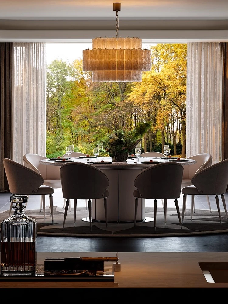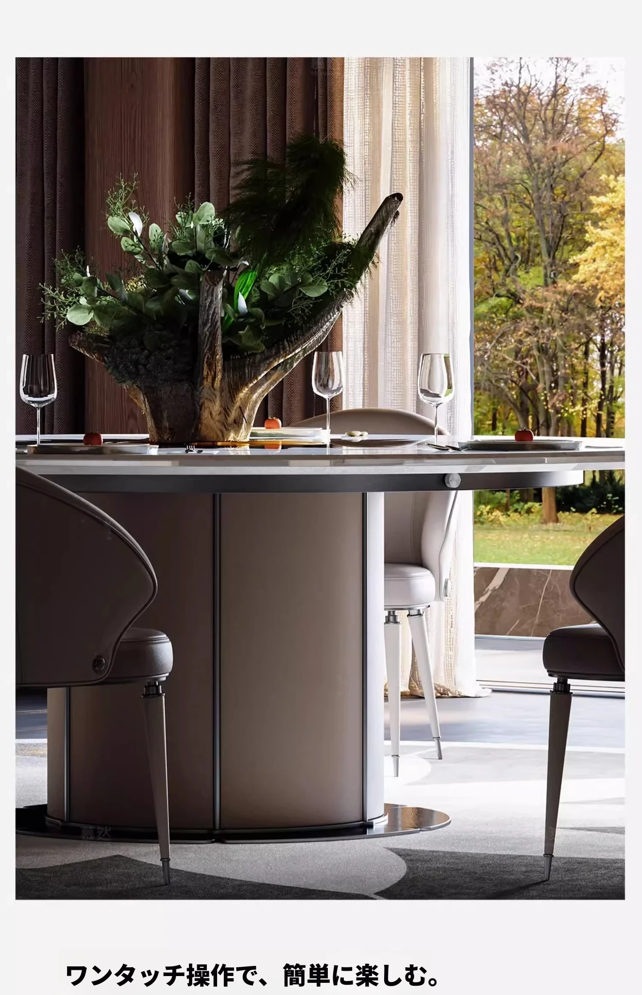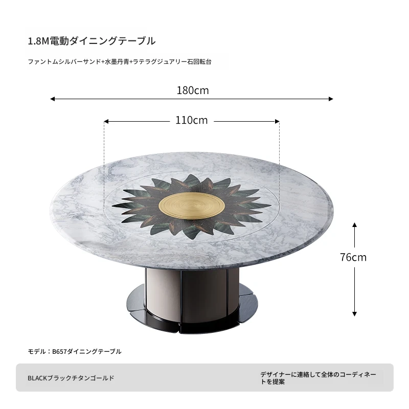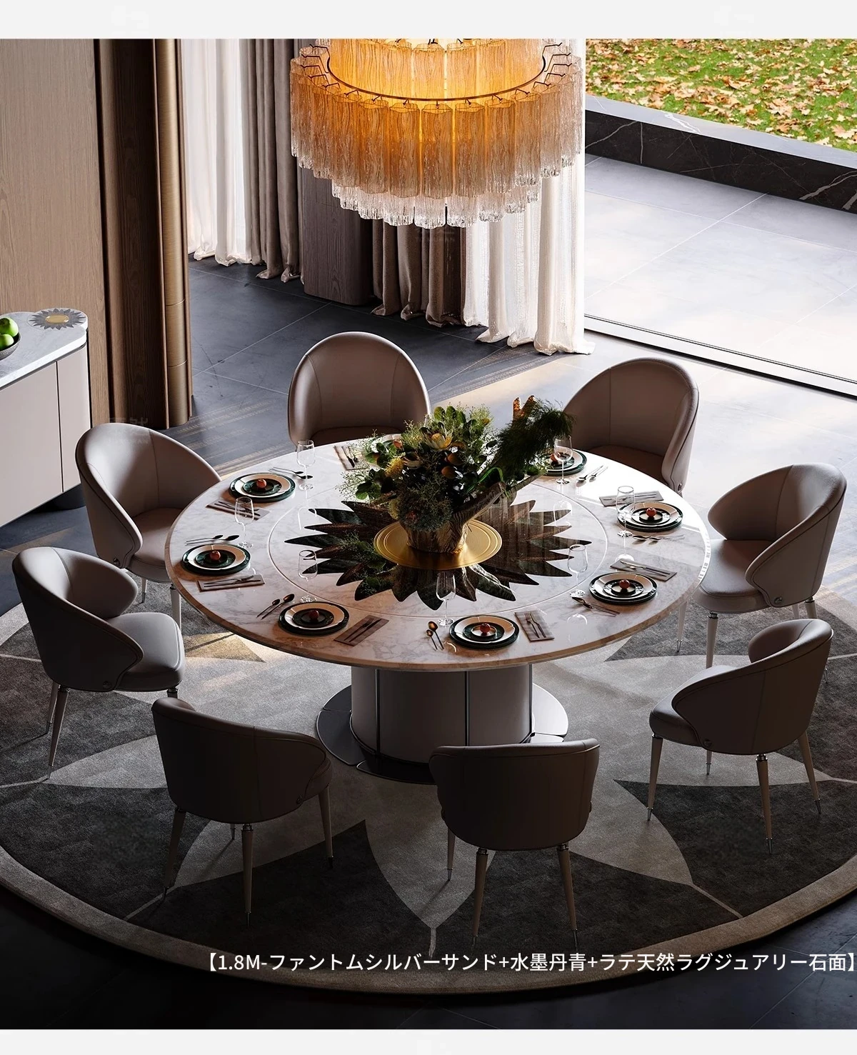 ダイニングテーブル/1.8M/ファントムシルバーサンド+水墨丹青+ラテラグジュアリーストーンターンテーブル/ブラックチタン