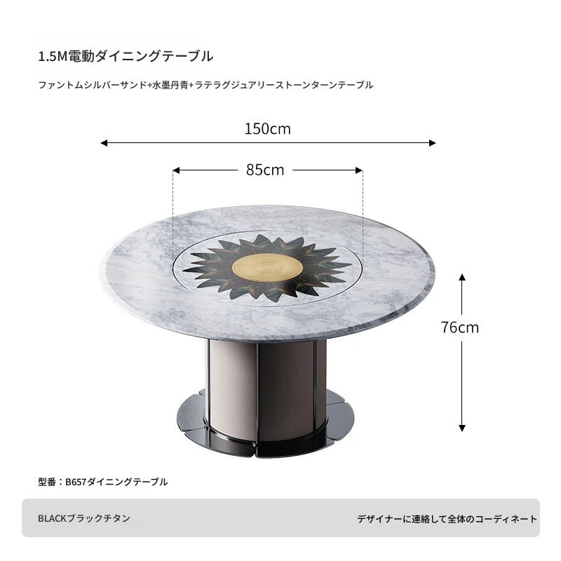 ダイニングテーブル/1.5M/ファントムシルバーサンド+水墨丹青+ラテラグジュアリーストーンターンテーブル/ブラックチタン