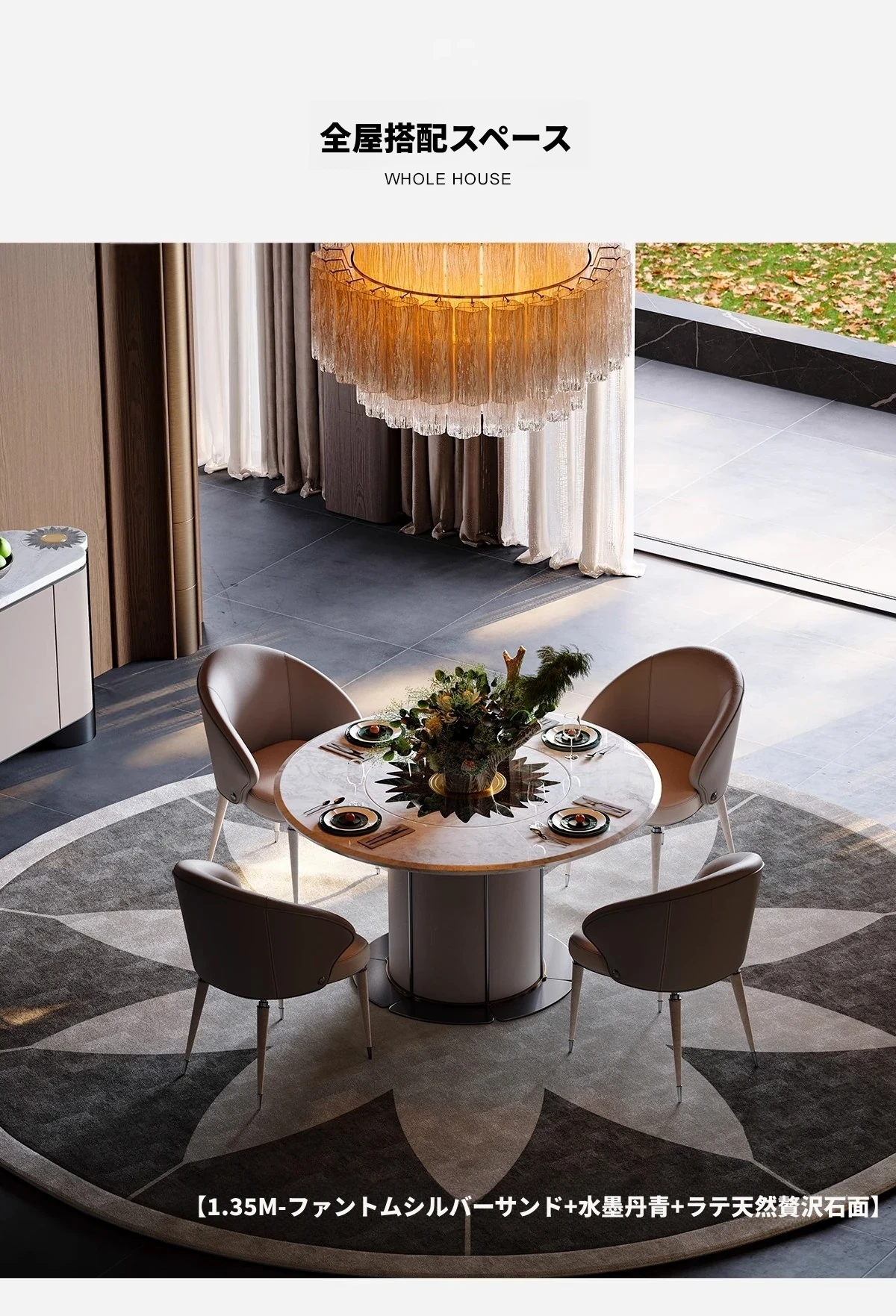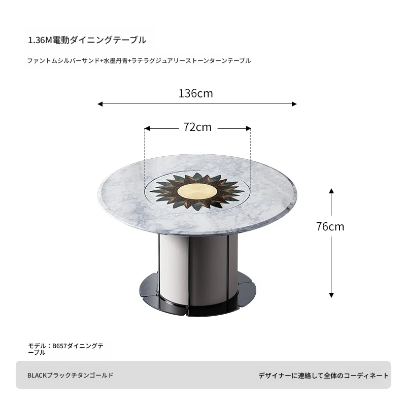 ダイニングテーブル/1.36M/ファントムシルバーサンド+水墨丹青+ラテラグジュアリーストーンターンテーブル/ブラックチタン