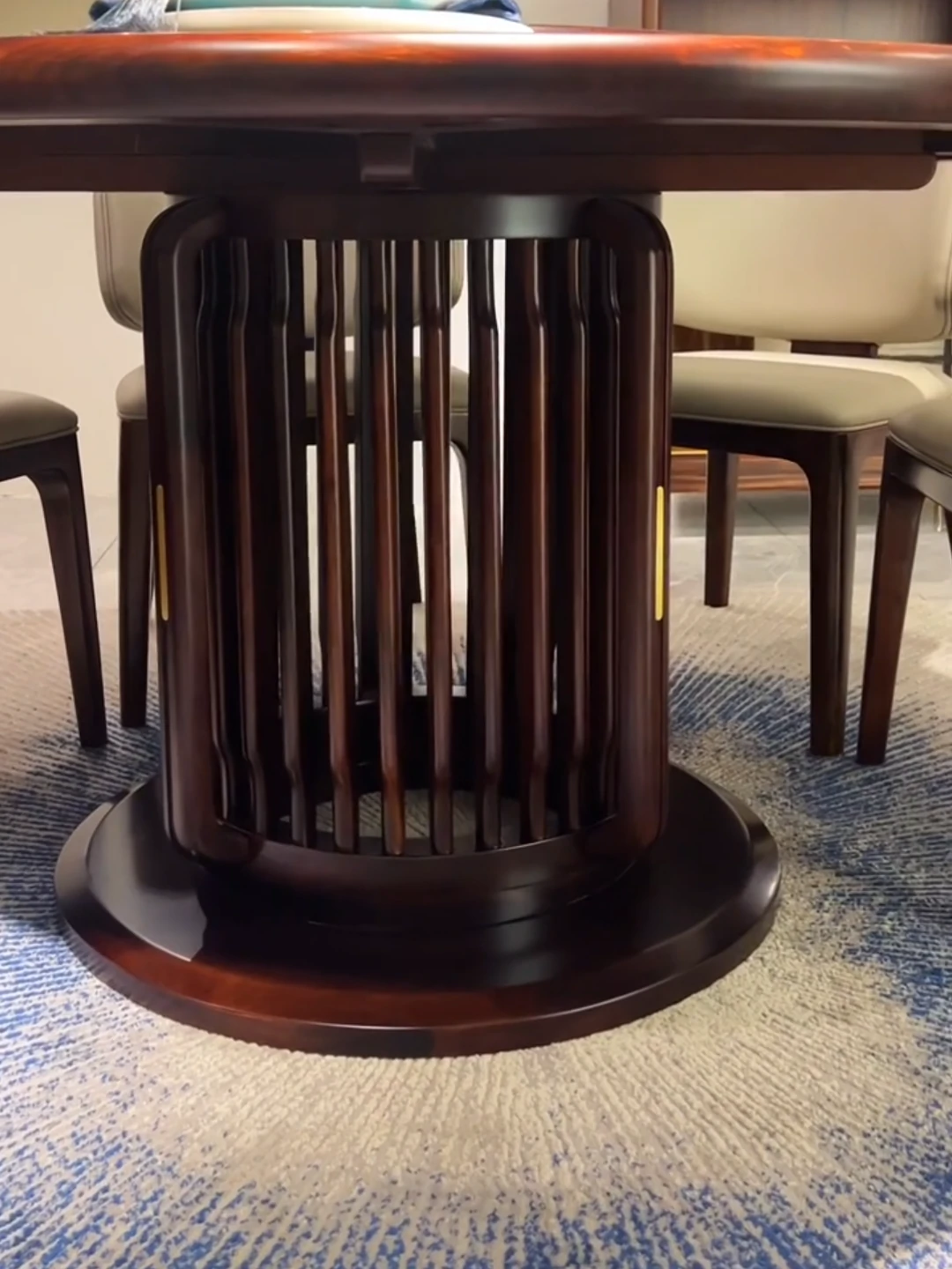新中式ウッドブラック岩板ダイニングテーブル | モダンでシンプルなデザイン | 大型家庭用・回転式・実木製・大きな円形テーブルで、食事の時間を特別に演出します!