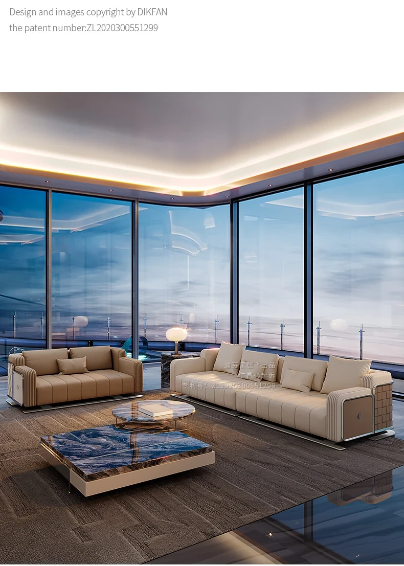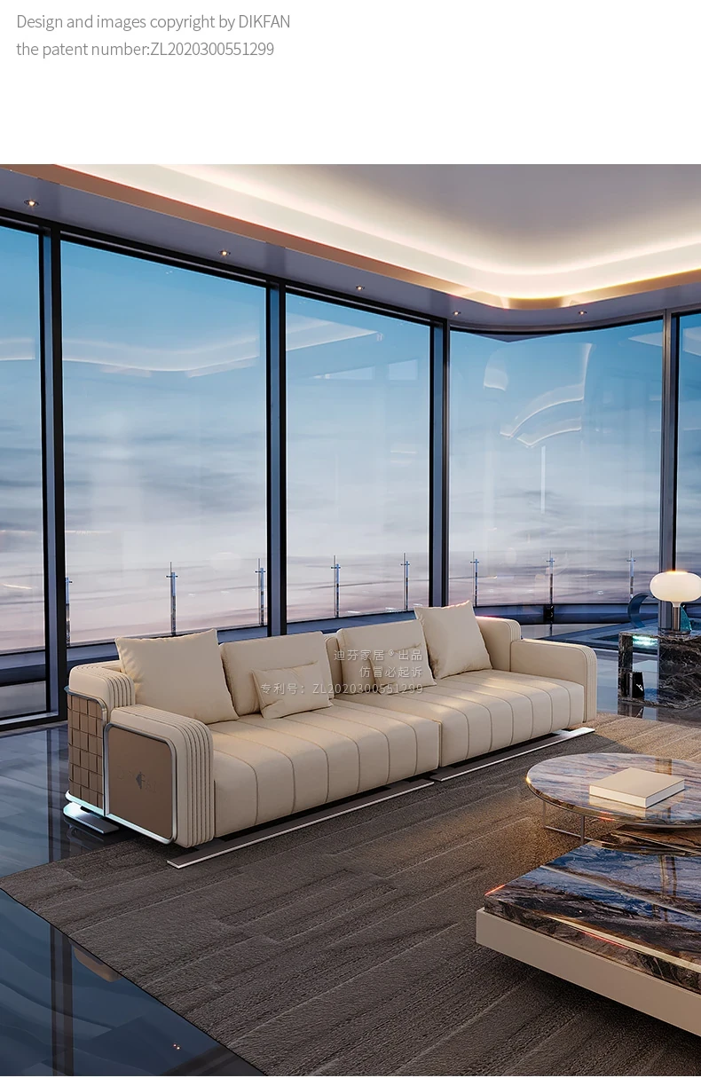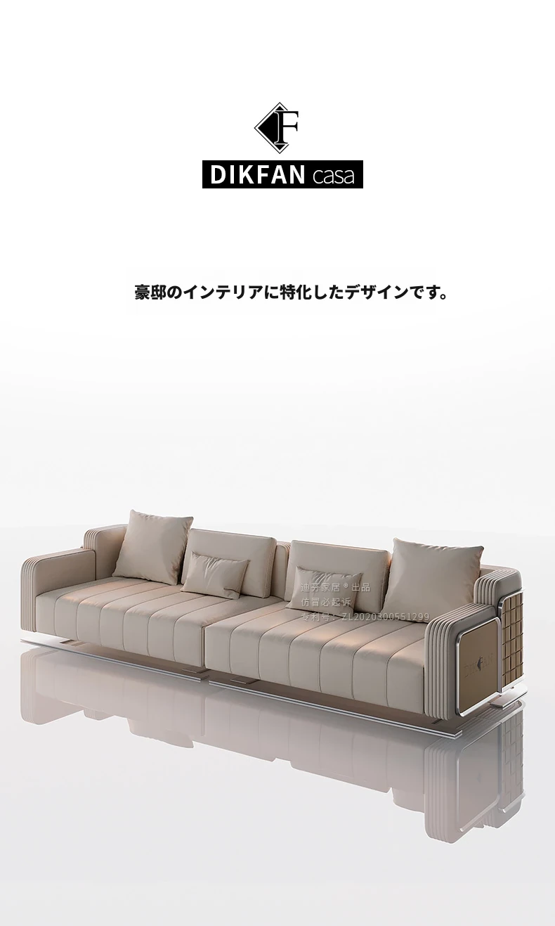 現代的ミニマリストスタイルのラグジュアリー全皮革ソファ - ヴィラや広々としたリビングに最適な高級家具のコンビネーションで、洗練された空間を演出します。