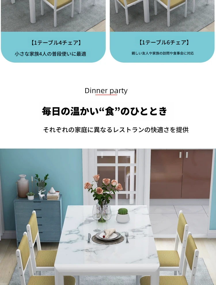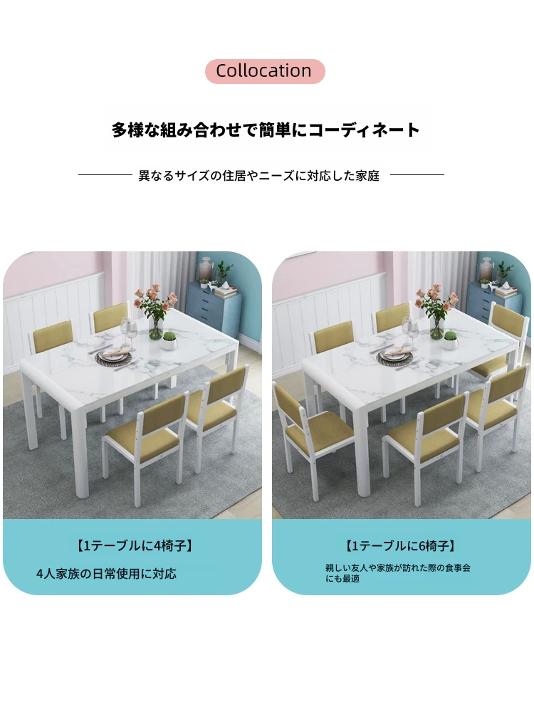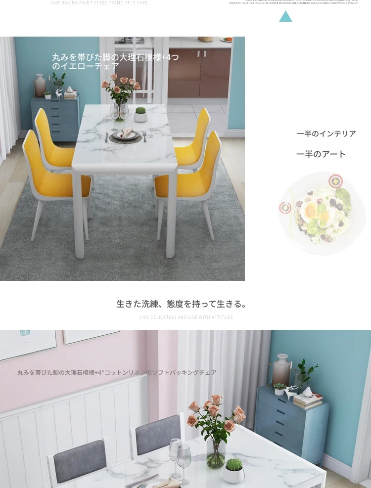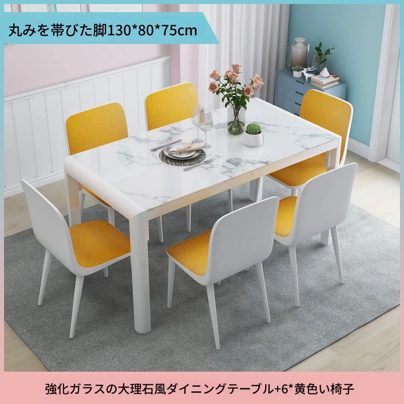 130*80 ラウンドレッグ 大理石模様 + 6* イエローチェア
