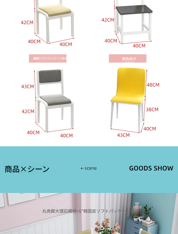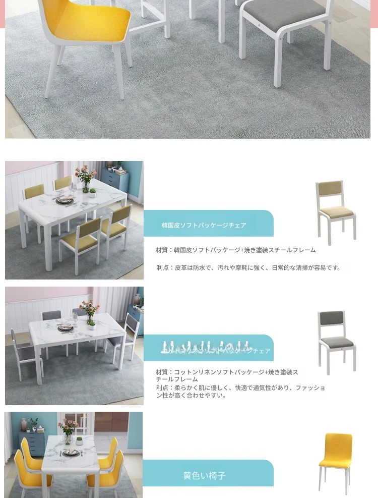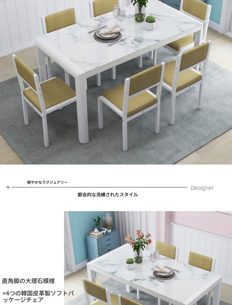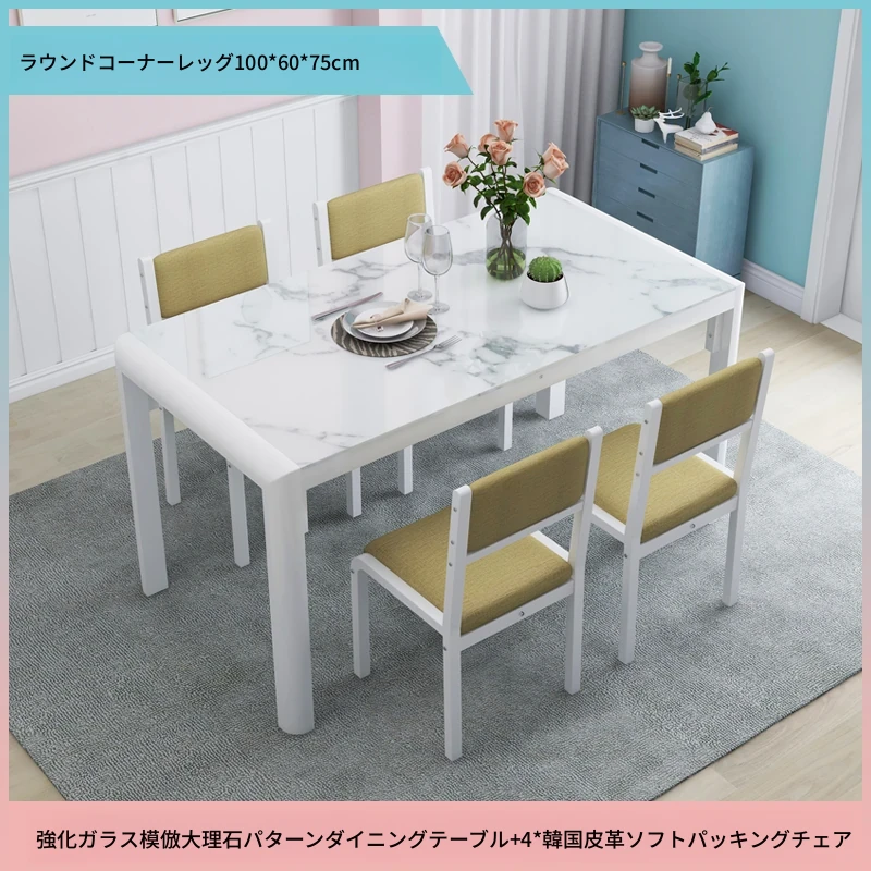 100*60 直角レッグ 大理石模様 + 4* 韓皮 ソフトパックチェア