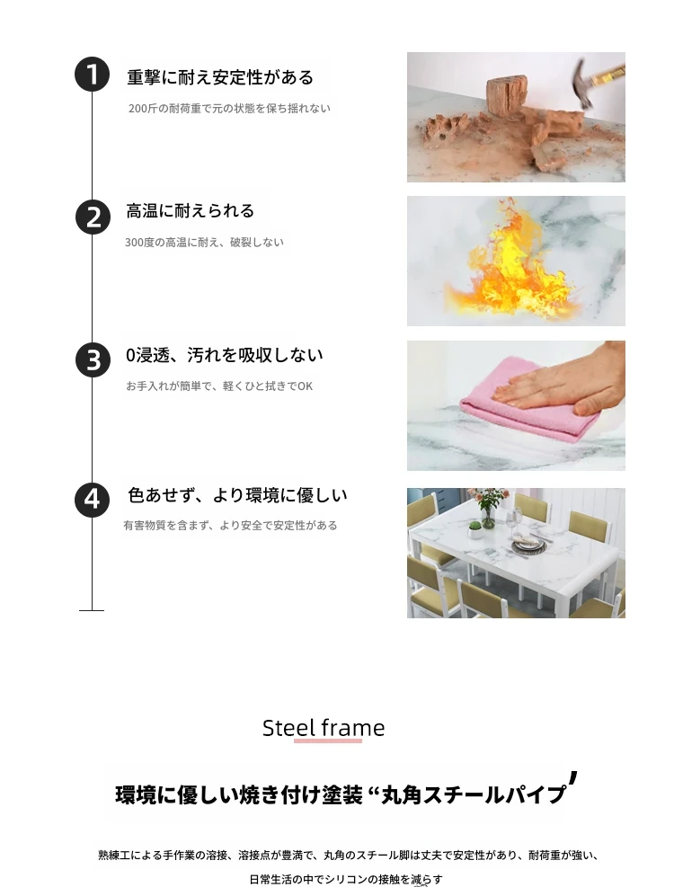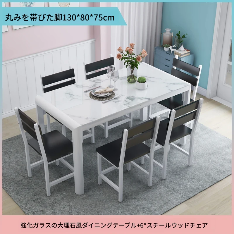 130*80 ラウンドレッグ 大理石模様 + 6* スチールウッドチェア
