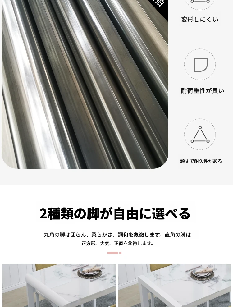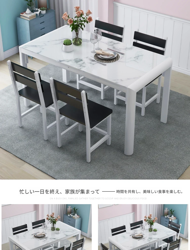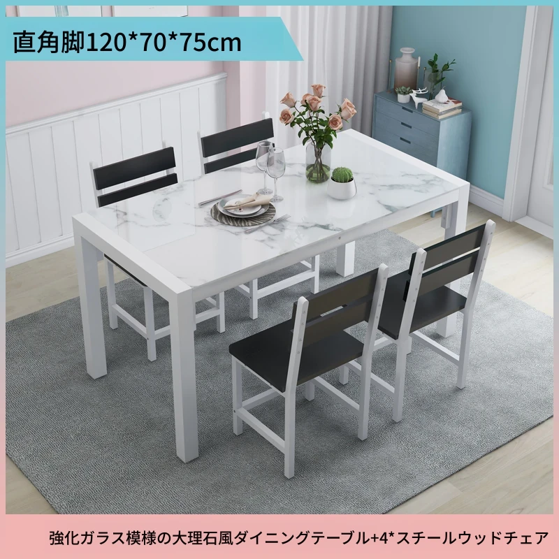 120*70 直角レッグ 大理石模様 + 4* スチールウッドチェア