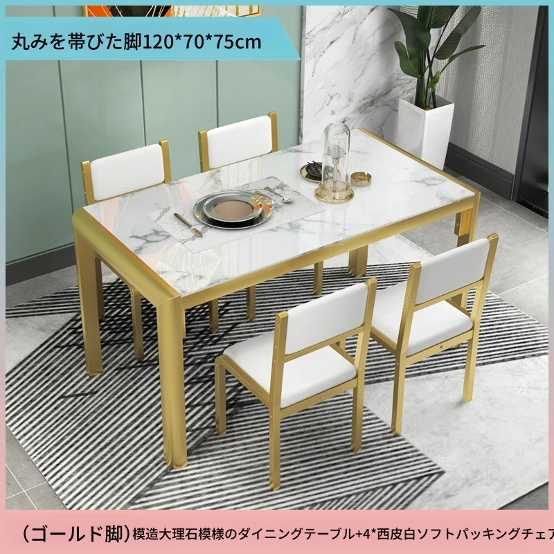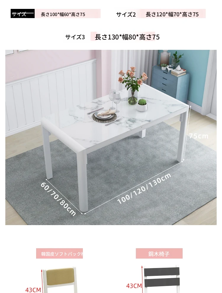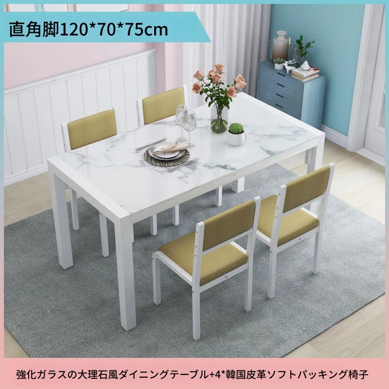 120*70 直角レッグ 大理石模様 + 4* 韓皮 ソフトパックチェア