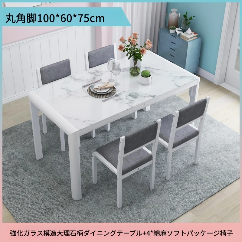 100*60 ラウンドレッグ 大理石模様 + 4* コットンリネン ソフトパックチェア