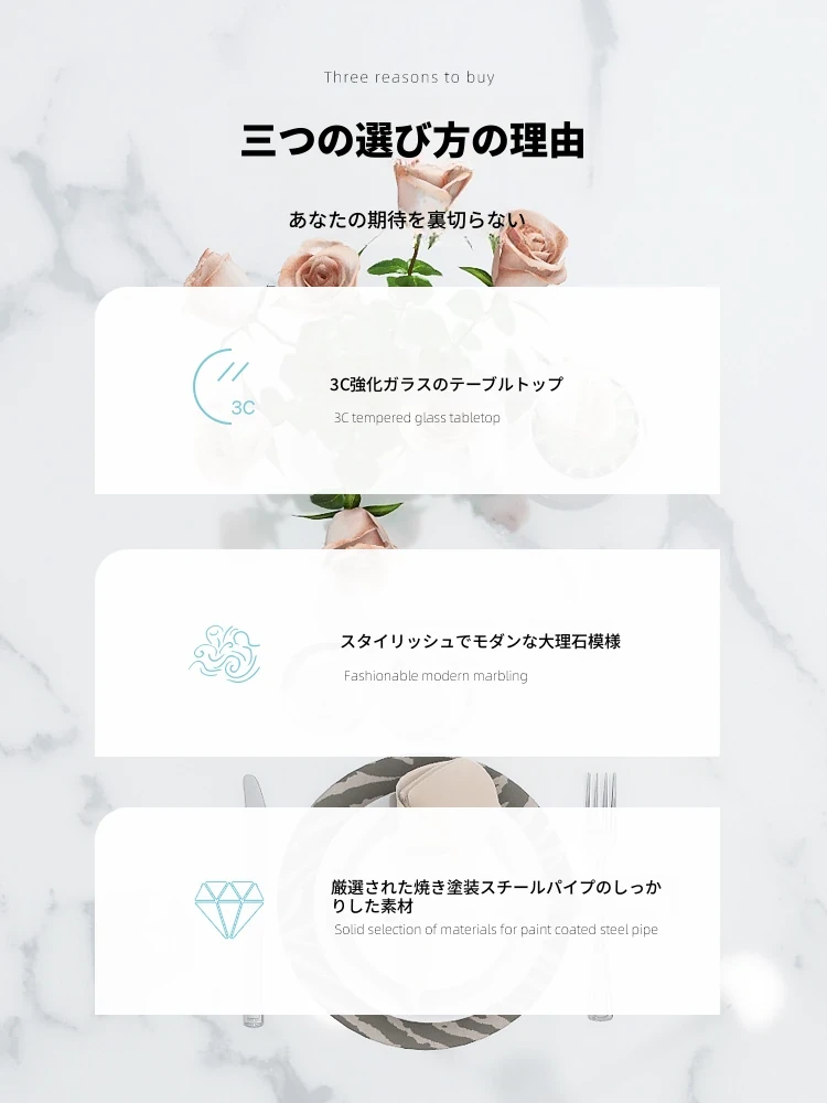 120*70 ラウンドレッグ 大理石模様 + 4* 韓皮 ソフトパックチェア