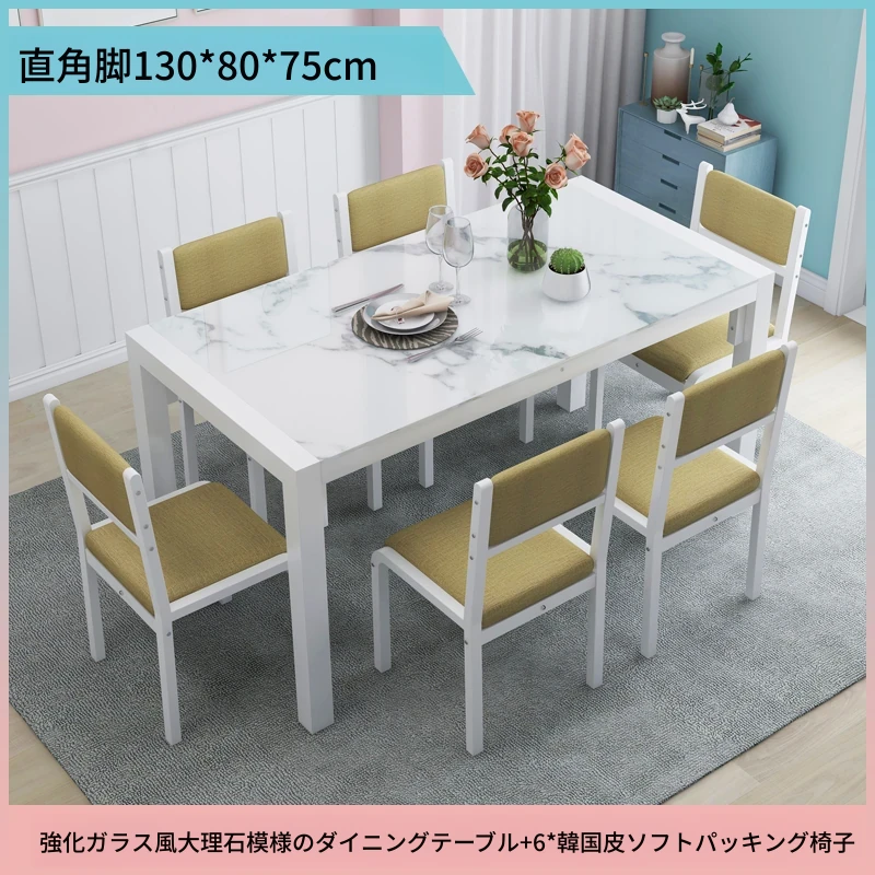 130*80 直角レッグ 大理石模様 + 6* 韓皮 ソフトパックチェア