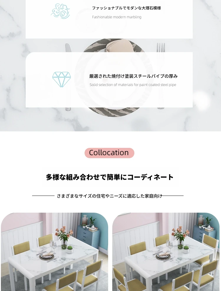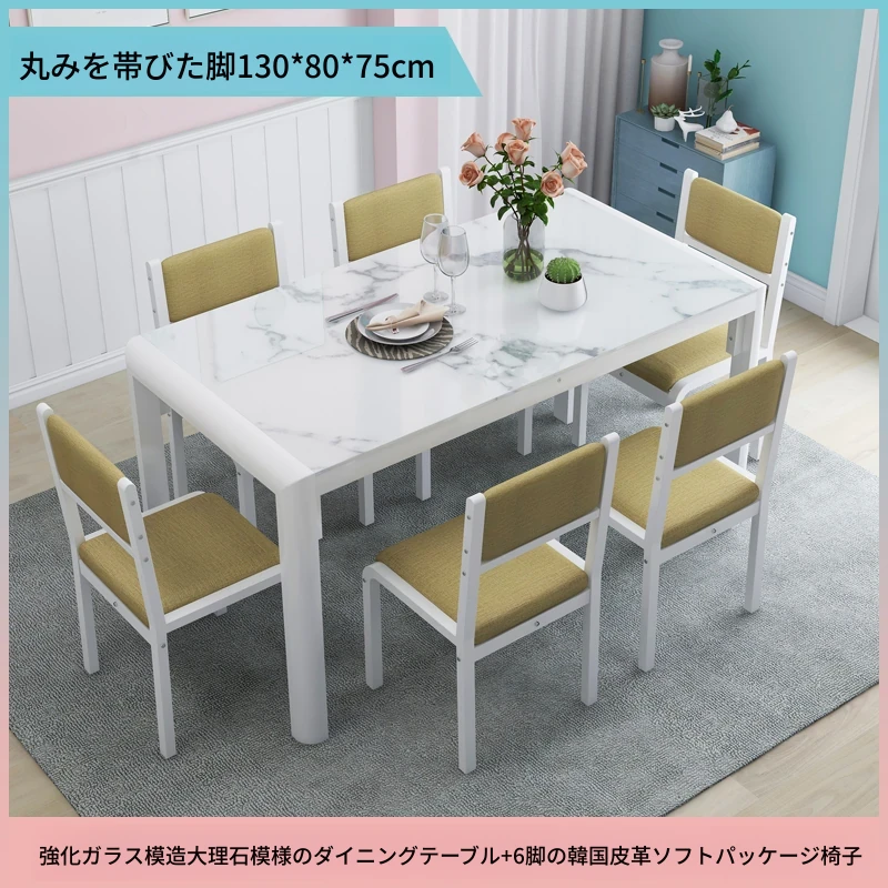 130*80 ラウンドレッグ 大理石模様 + 6* 韓皮 ソフトパックチェア