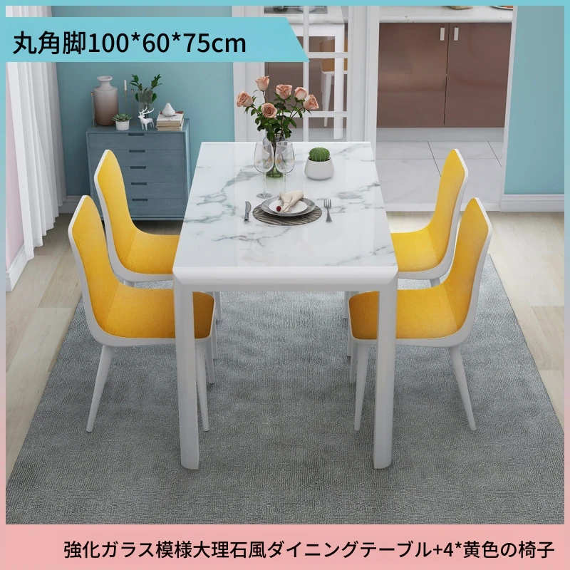 100*60 ラウンドレッグ 大理石模様 + 4* イエローチェア