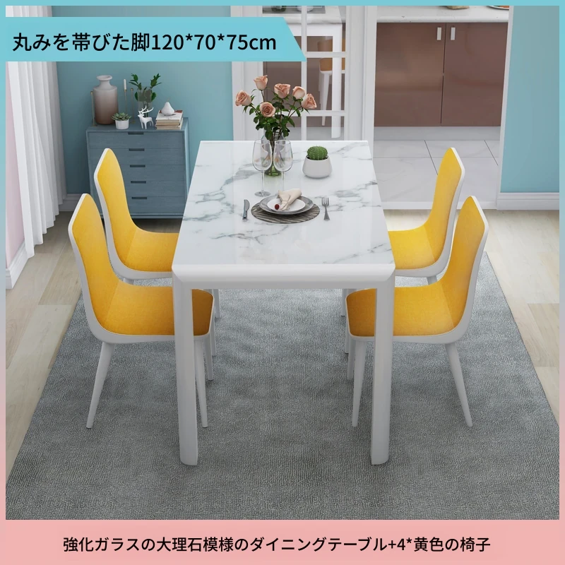 120*70 ラウンドレッグ 大理石模様 + 4* イエローチェア