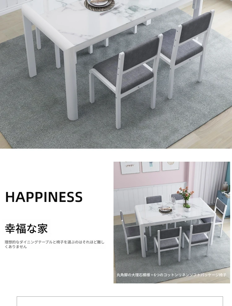 100*60 直角レッグ 大理石模様 + 4* コットンリネン ソフトパックチェア