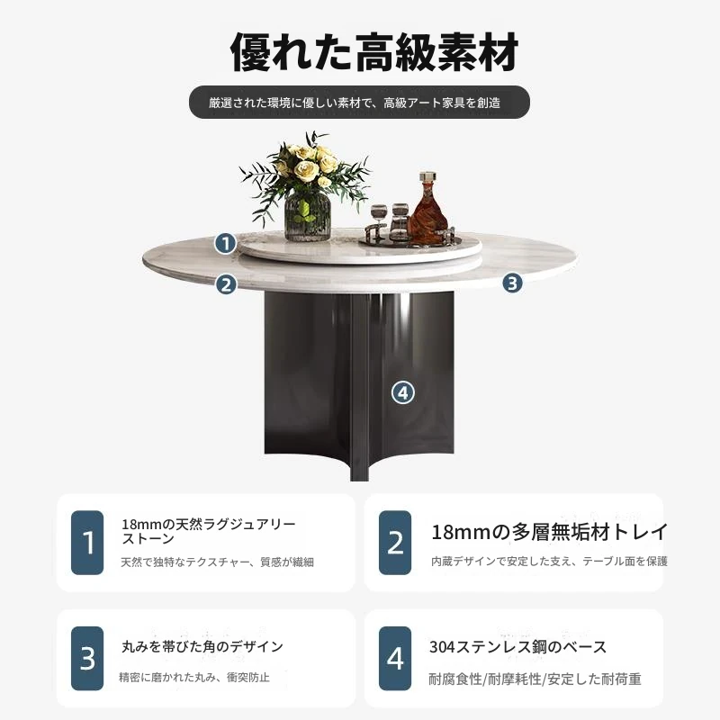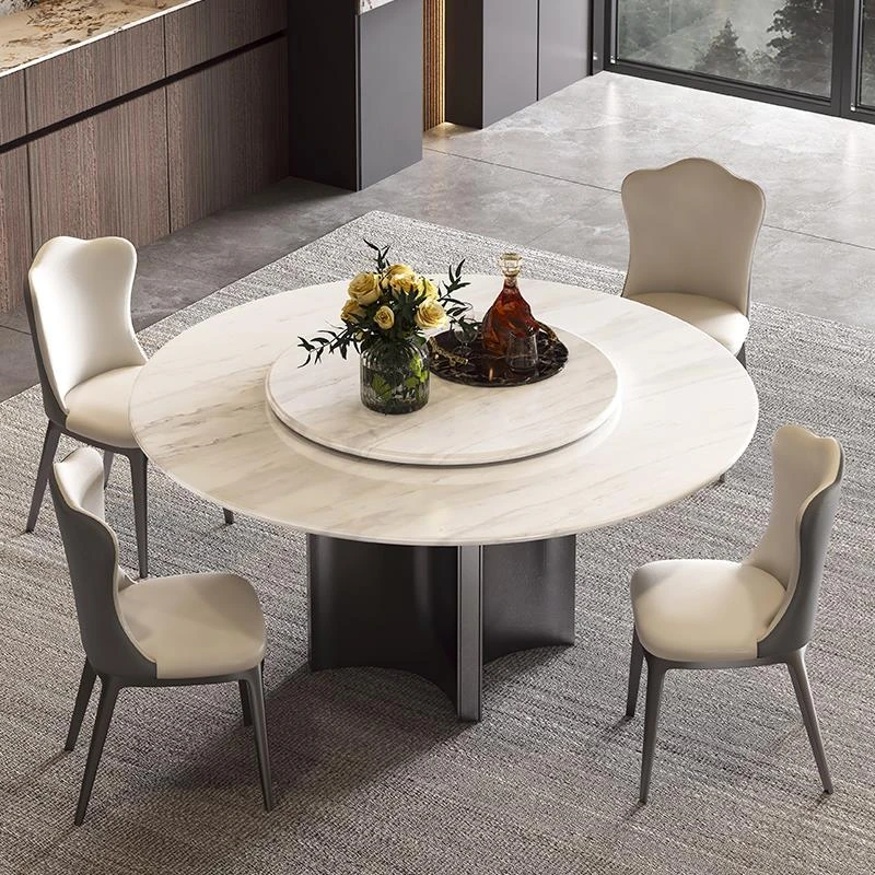 ジャズホワイト天然ラグジュアリー石ダイニングテーブル+回転盤