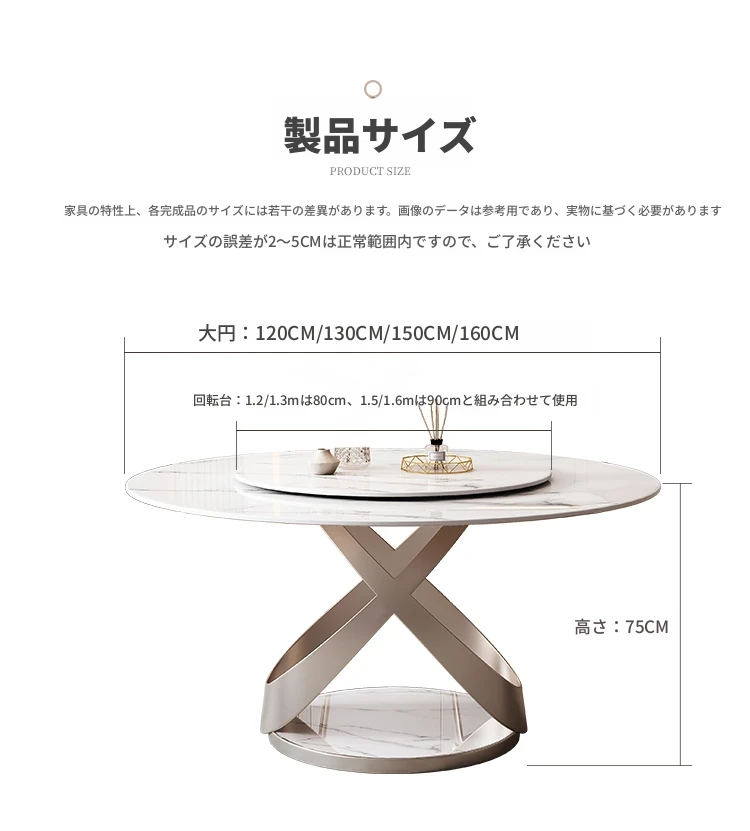 1.2メートル単テーブル+回転テーブル(岩板天板) 光沢/マット仕上げ選択可