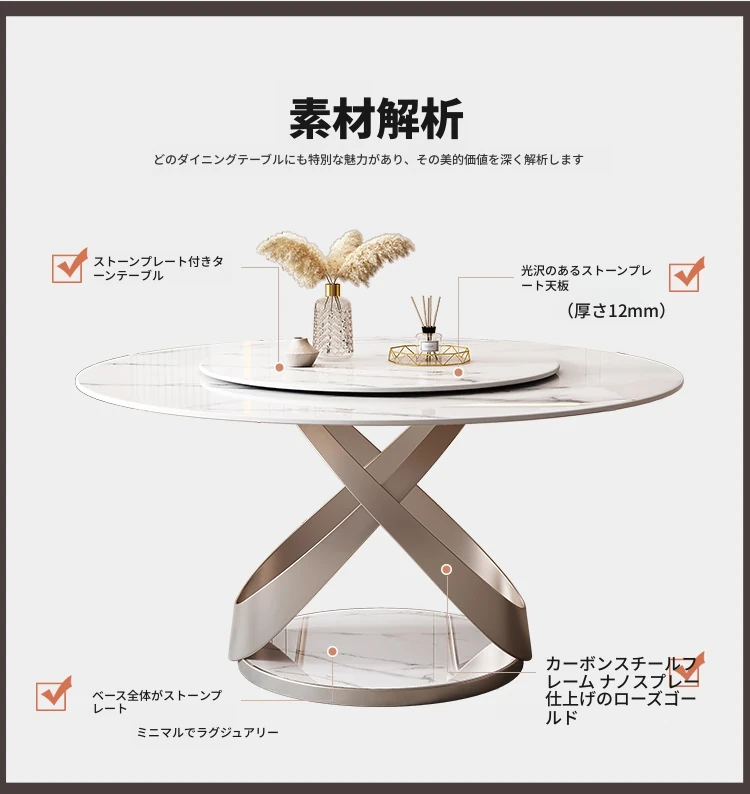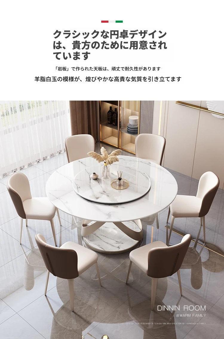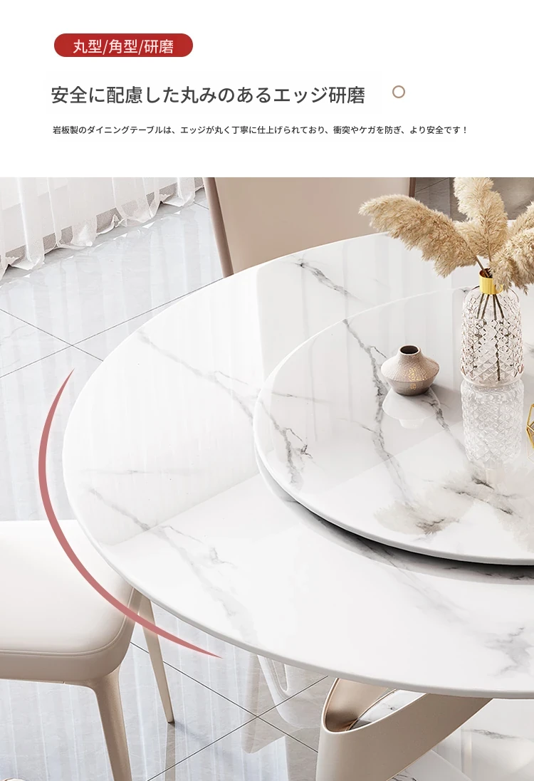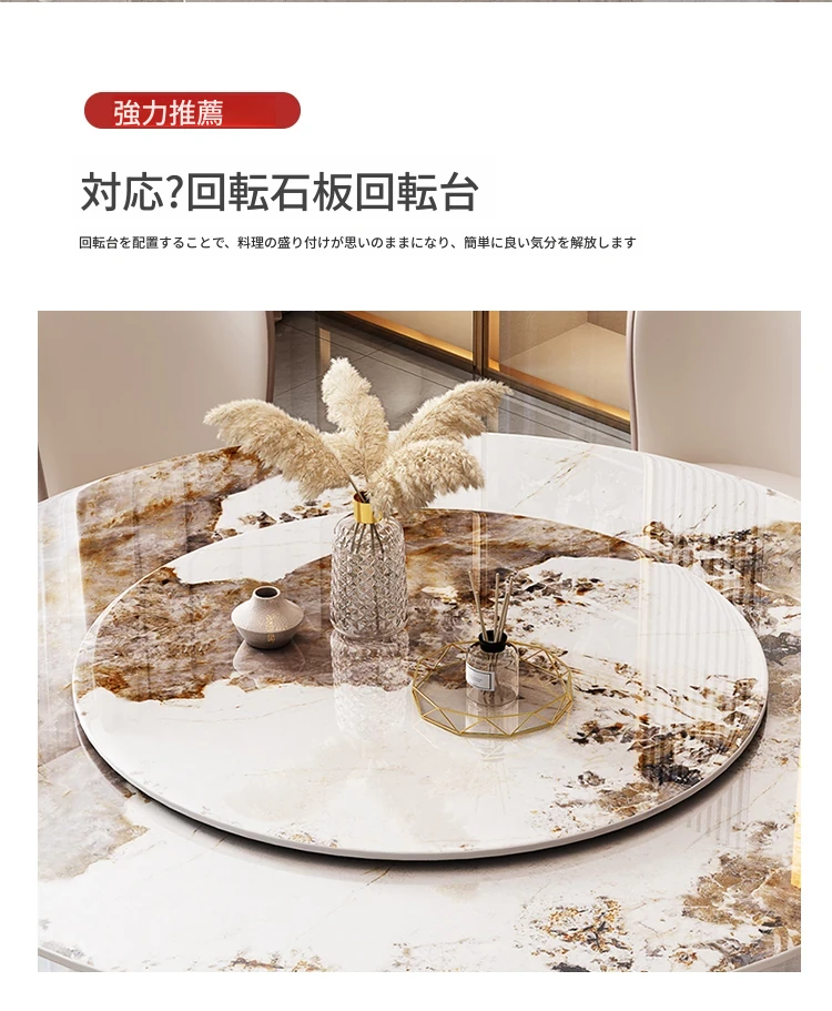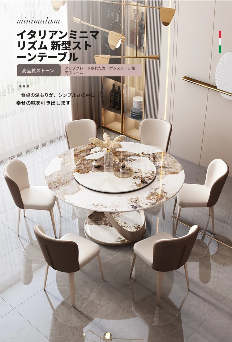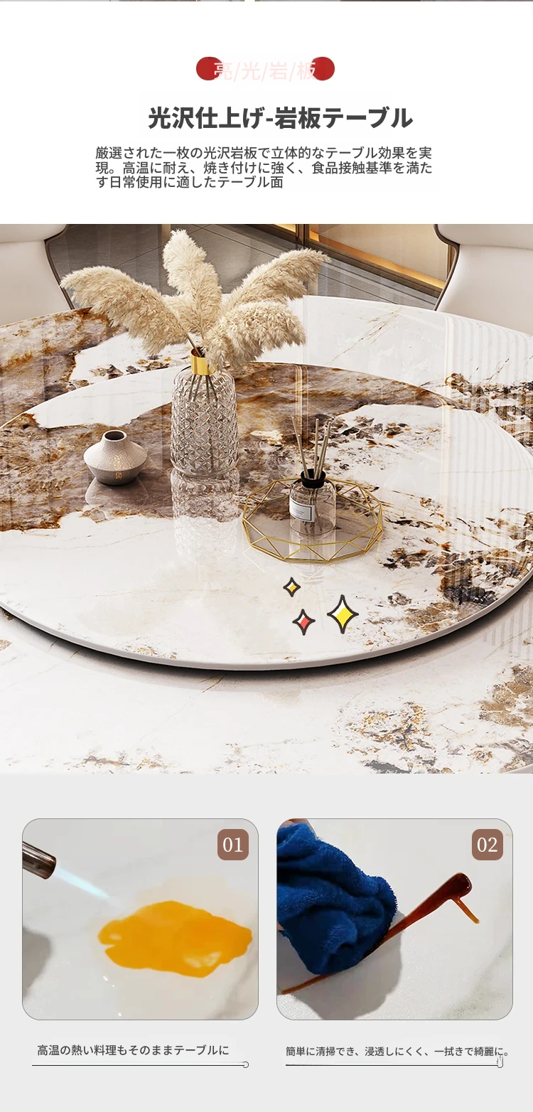 1.2+6椅+回転テーブル(岩板天板) 光沢/マット仕上げ選択可