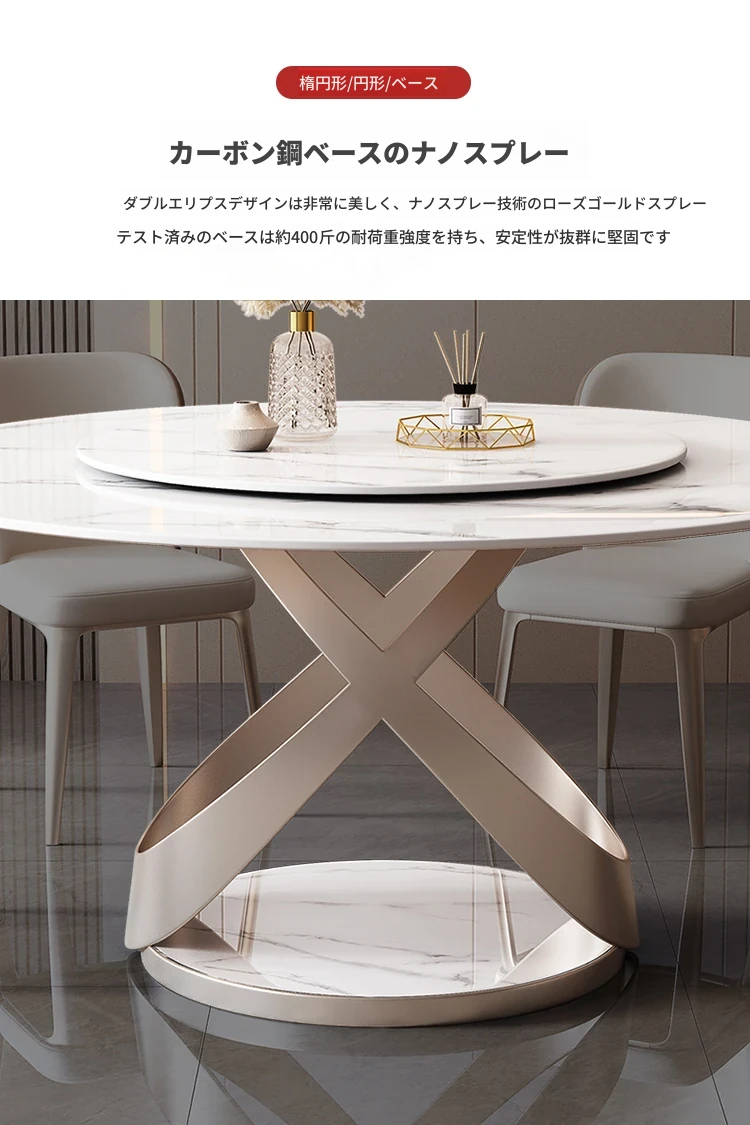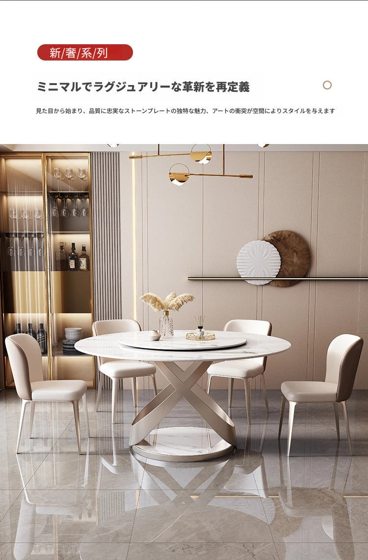 1.5+4椅+回転テーブル(岩板天板) 光沢/マット仕上げ選択可