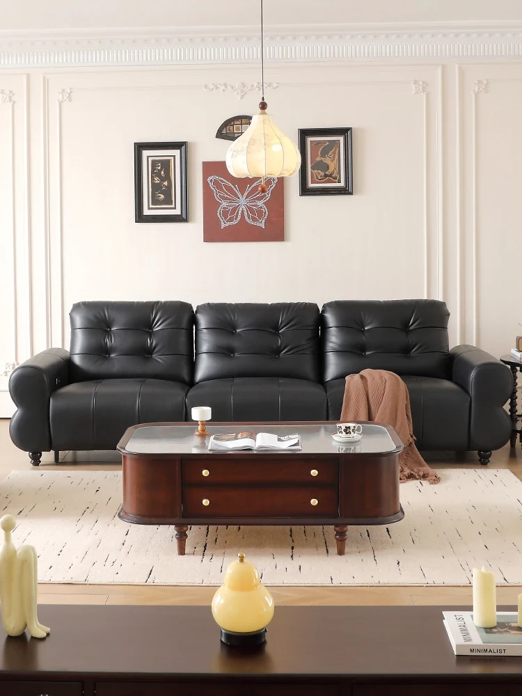 モダンシンプルなリビング用ソフトパッケージ直立レザーソファ 大型ファミリー向け 高級感あふれるホーム用コンビネーション ソファで優雅な空間を演出!