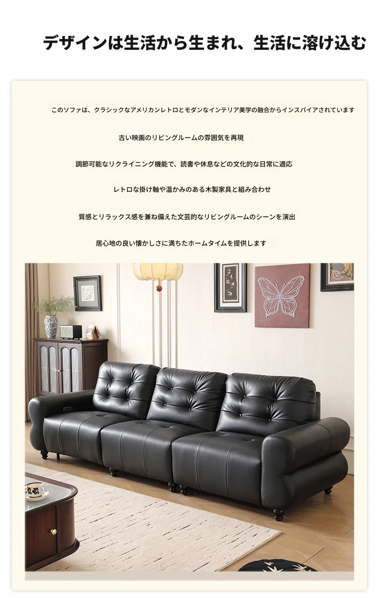 2024年新作!イタリアンミニマル本革ソファ - モダンなデザインで別荘全体をスタイリッシュに演出!リビングにぴったりの洗練された選択。