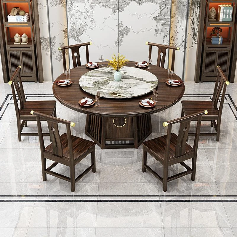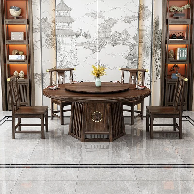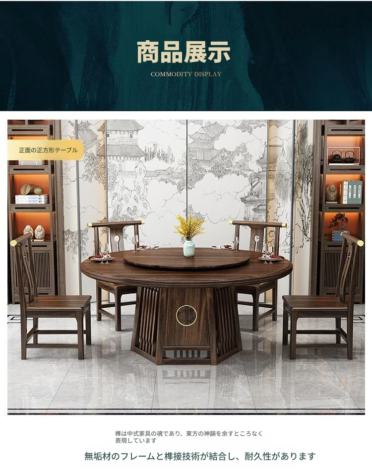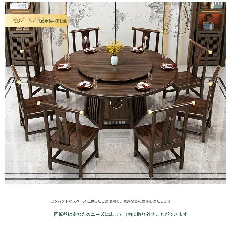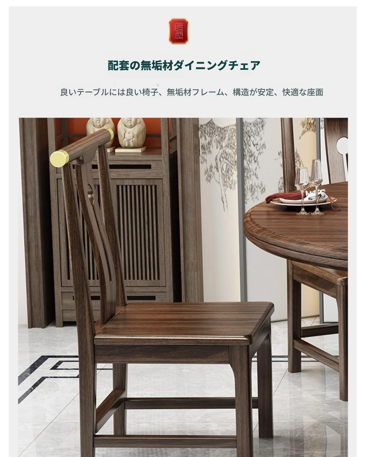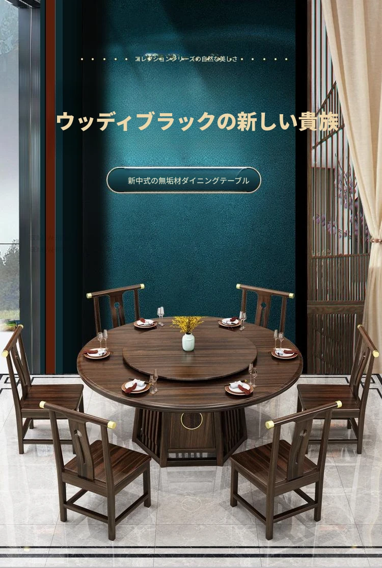 新中式スタイルの高級感あふれる無垢材ダイニングテーブルセット - シンプルで洗練された円形デザイン、6人用家庭用。食事のひとときを特別なものに演出します!