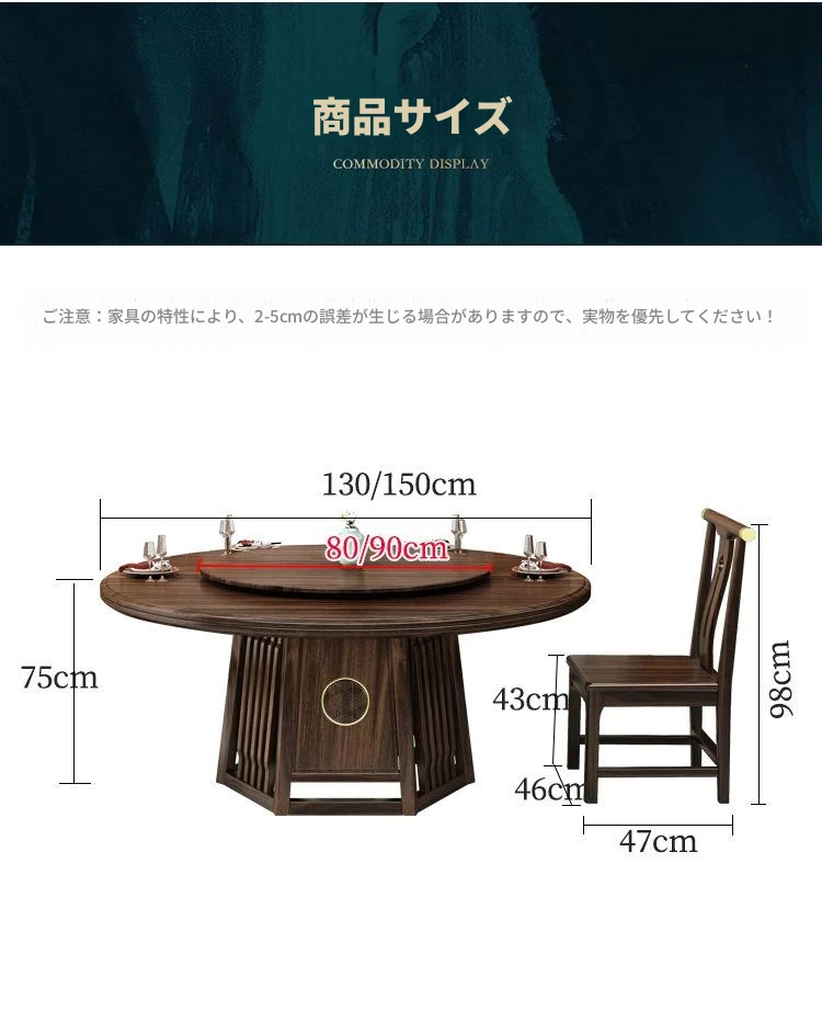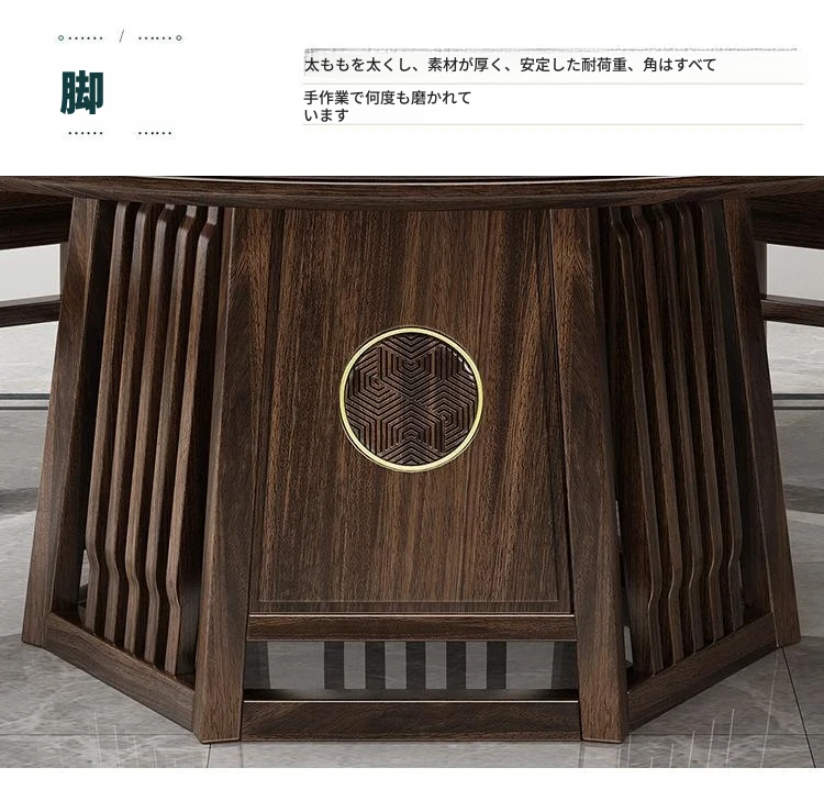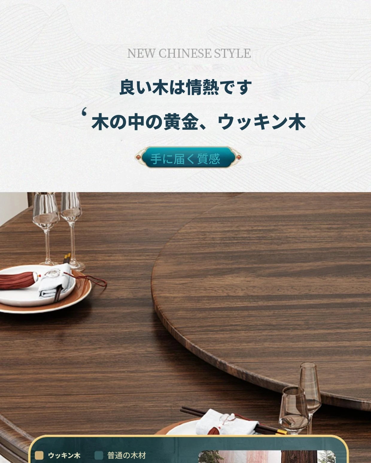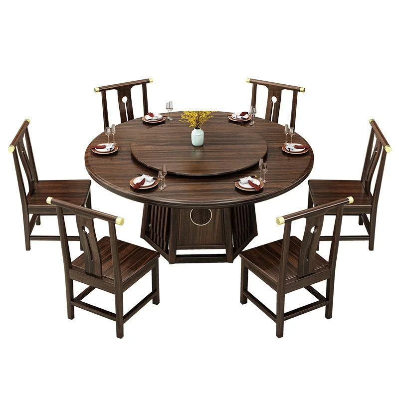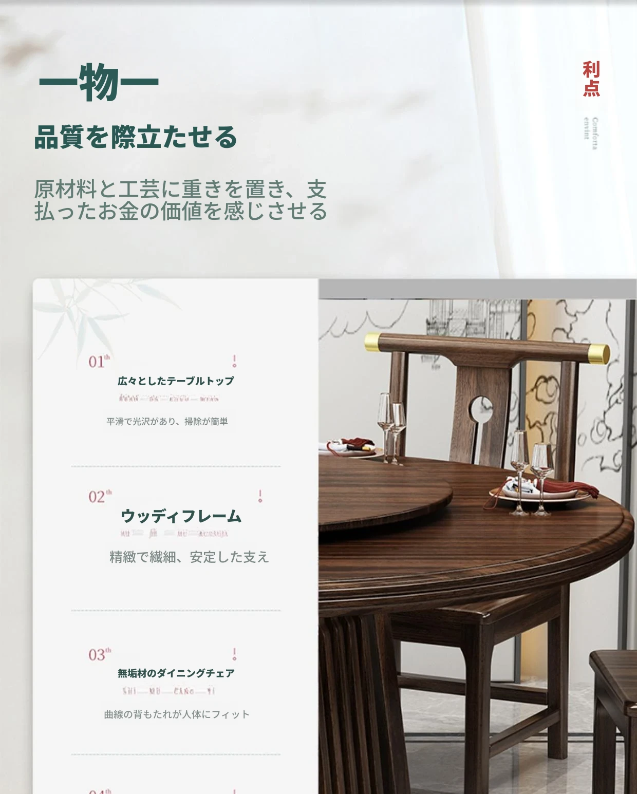新中式スタイルの高級感あふれる無垢材ダイニングテーブルセット - シンプルで洗練された円形デザイン、6人用家庭用。食事のひとときを特別なものに演出します!