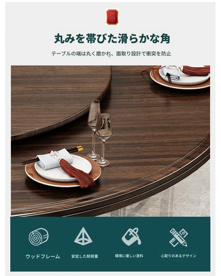ジェファンシー大理石円卓 無垢材ダイニングテーブル 回転式プレート付き 家庭用 シンプルでエレガントなデザイン IH対応 快適な食事空間を演出するラグジュアリーな円形テーブル
