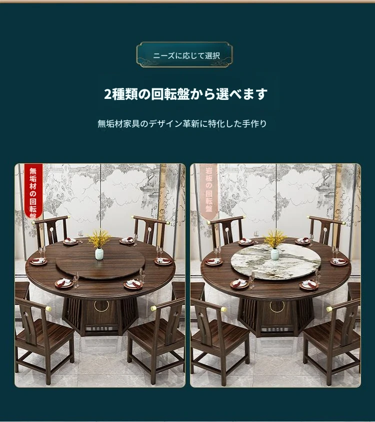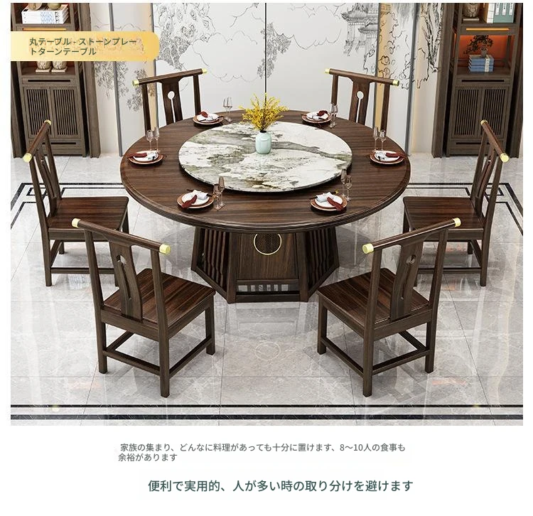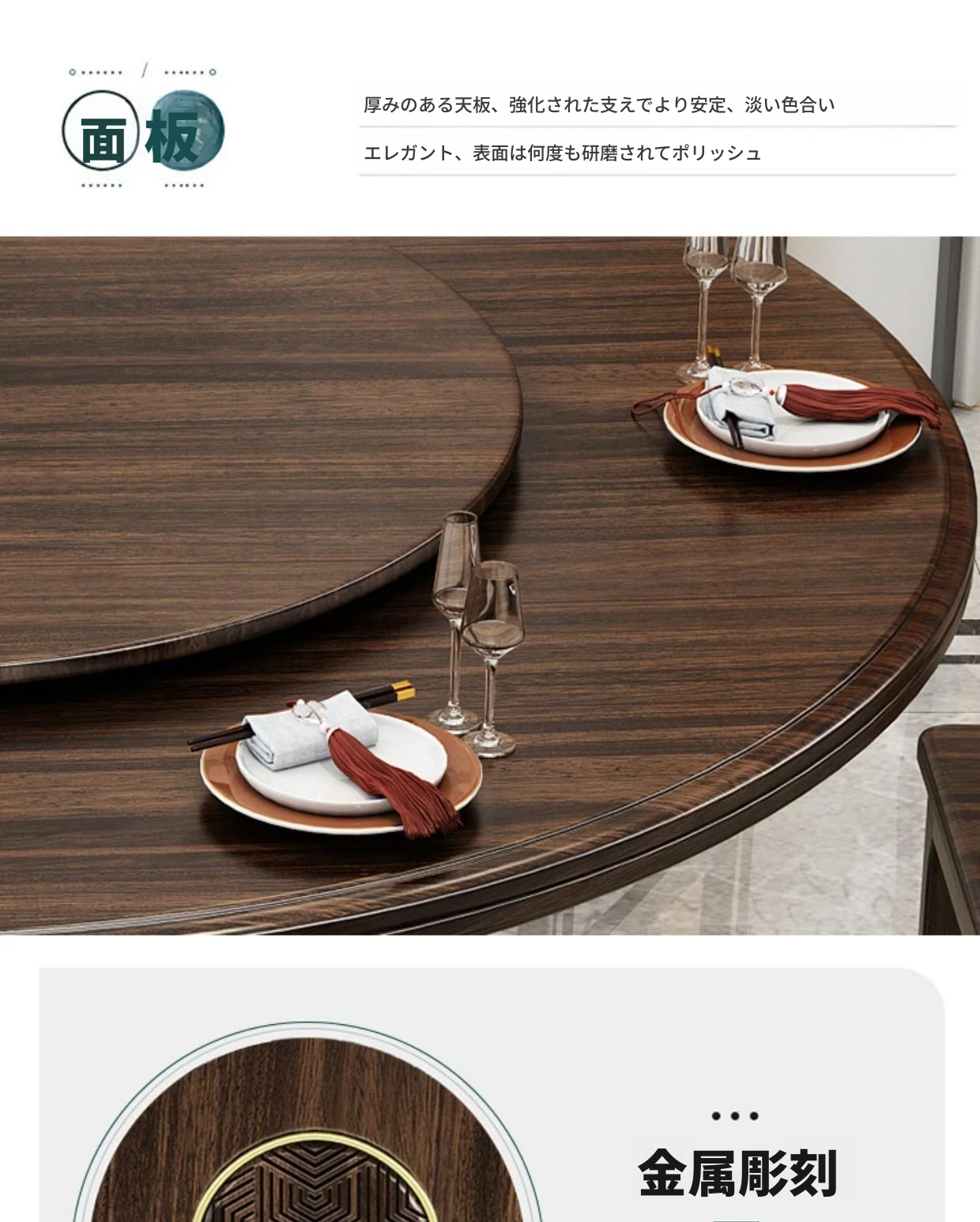 モダンでシンプルな大理石ダイニングテーブルセット、8人用回転円卓。実木製で、家族や友人との特別な食事を演出します。スタイリッシュな中華スタイルで、どんなインテリアにもぴったり!