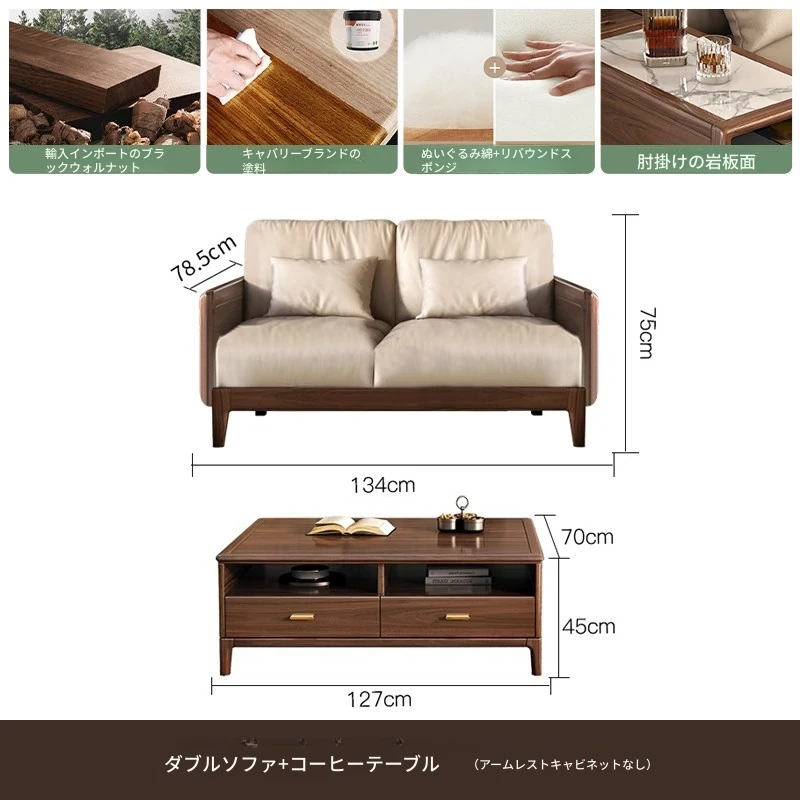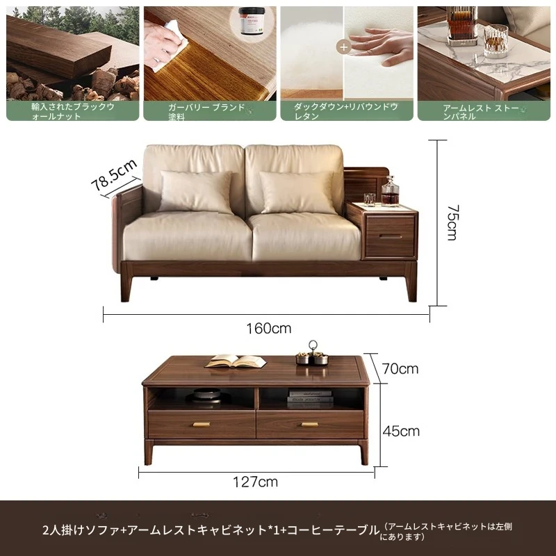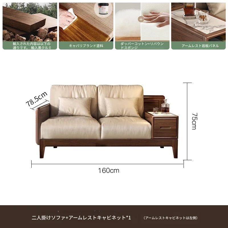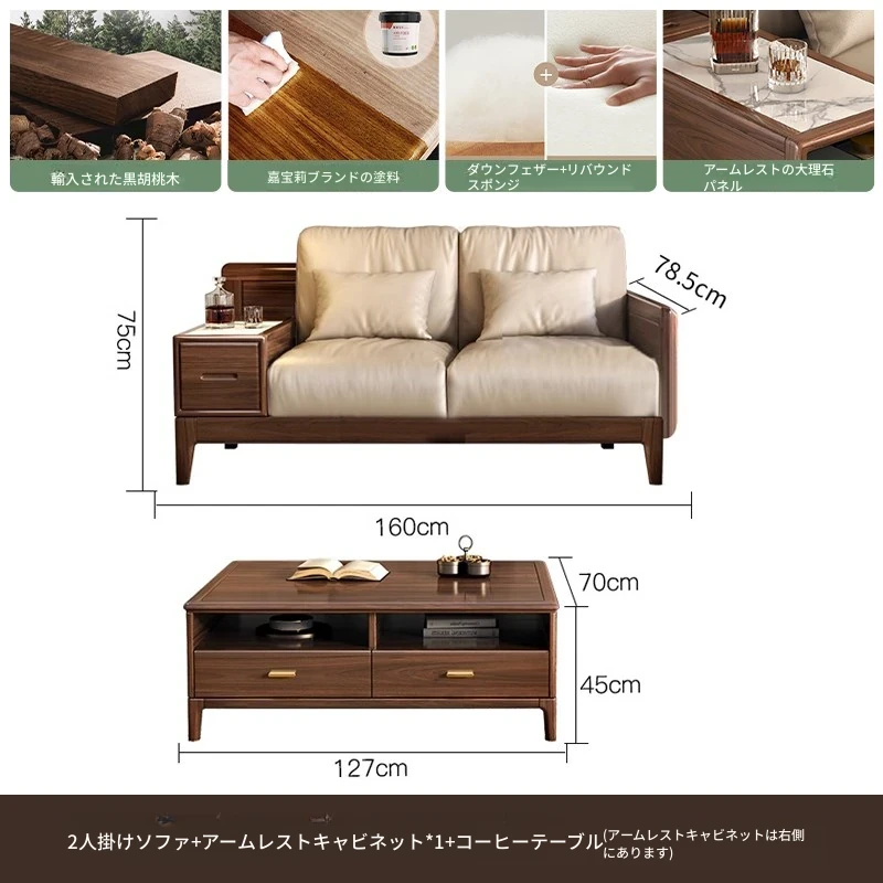 2人用ソファ+左肘掛けキャビネット+テーブル、セット